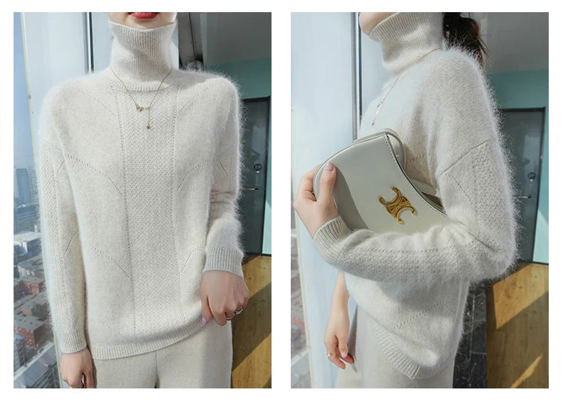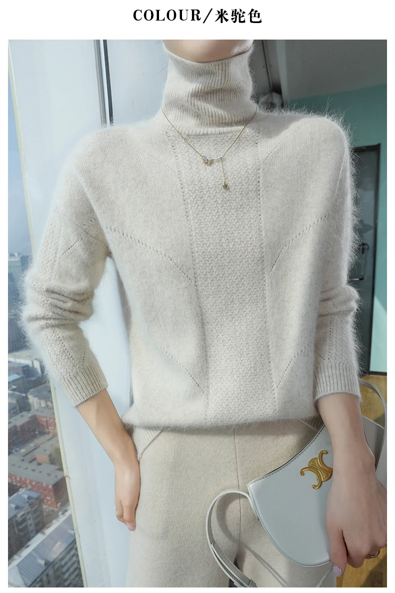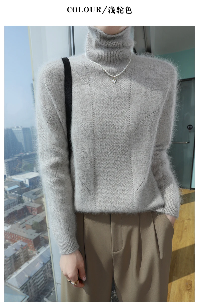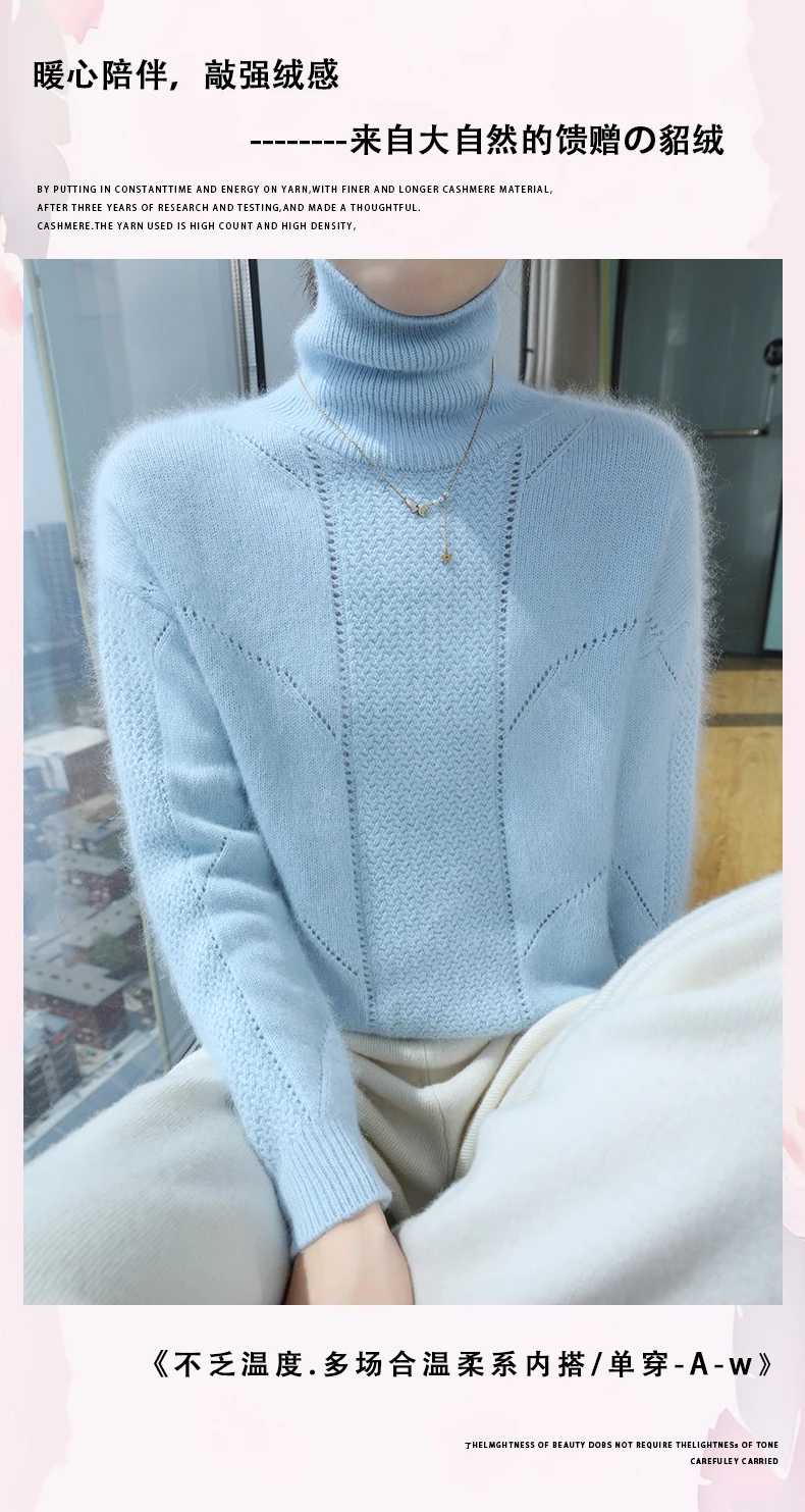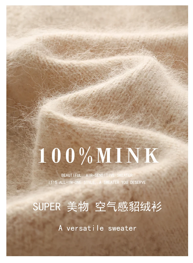 2024 Autumn and Winter Women's Dress 100% Mink Cashmere Sweater Turtleneck Knitted Long Sleeve Thick Warm Pullover Fashion Top