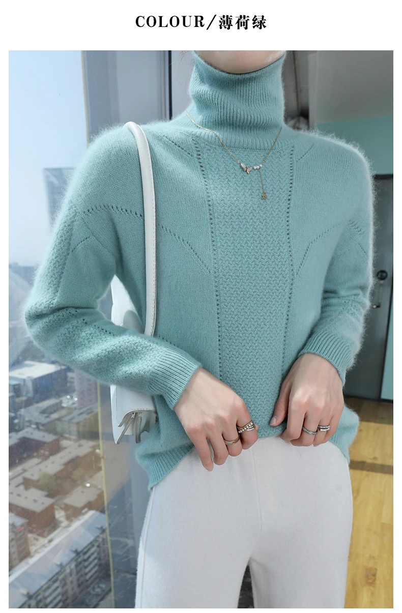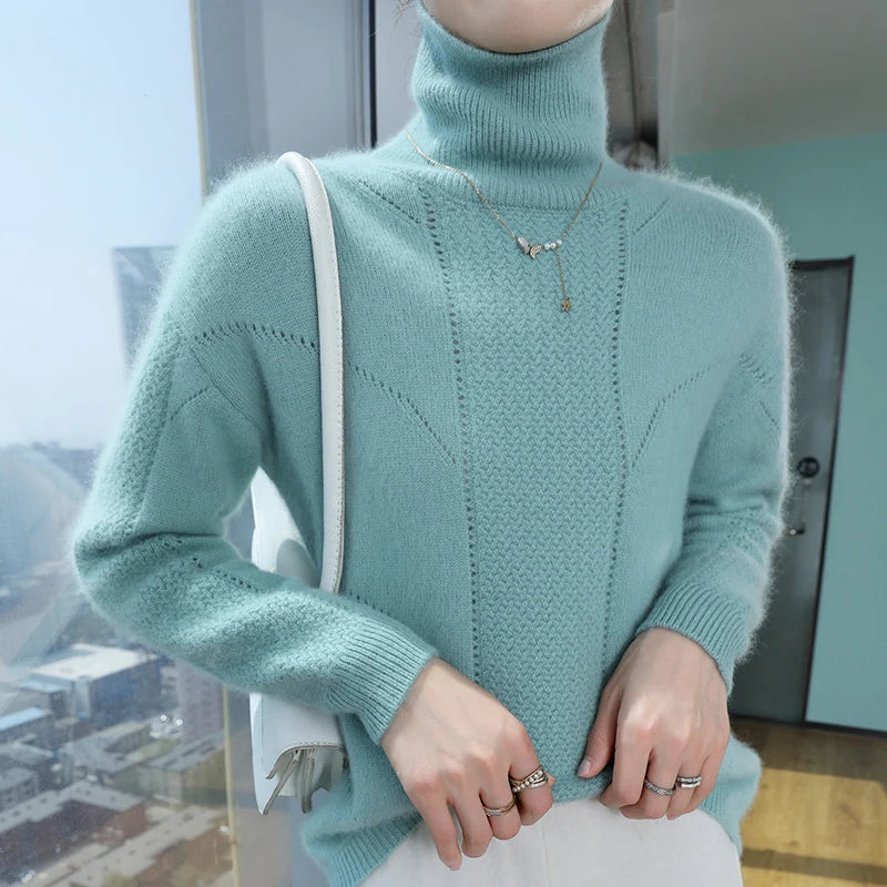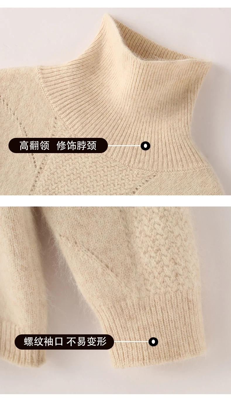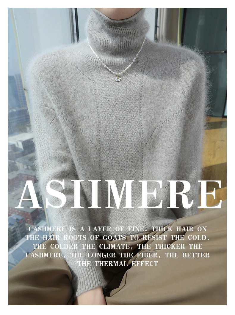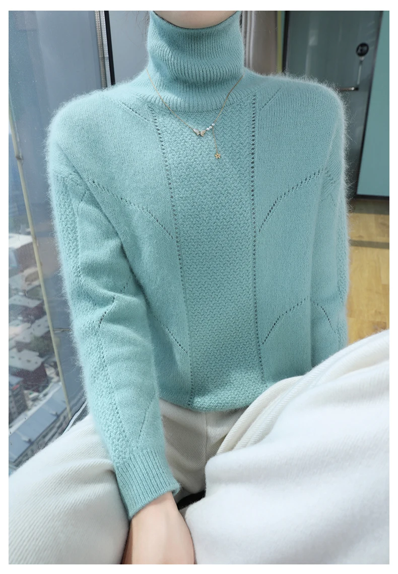 2024 Autumn and Winter Women's Dress 100% Mink Cashmere Sweater Turtleneck Knitted Long Sleeve Thick Warm Pullover Fashion Top