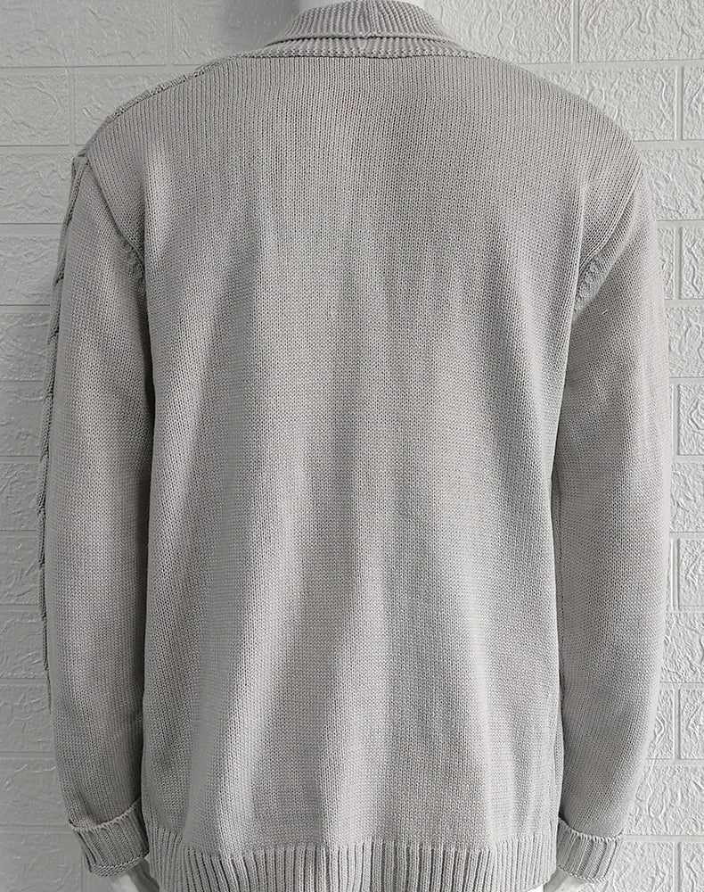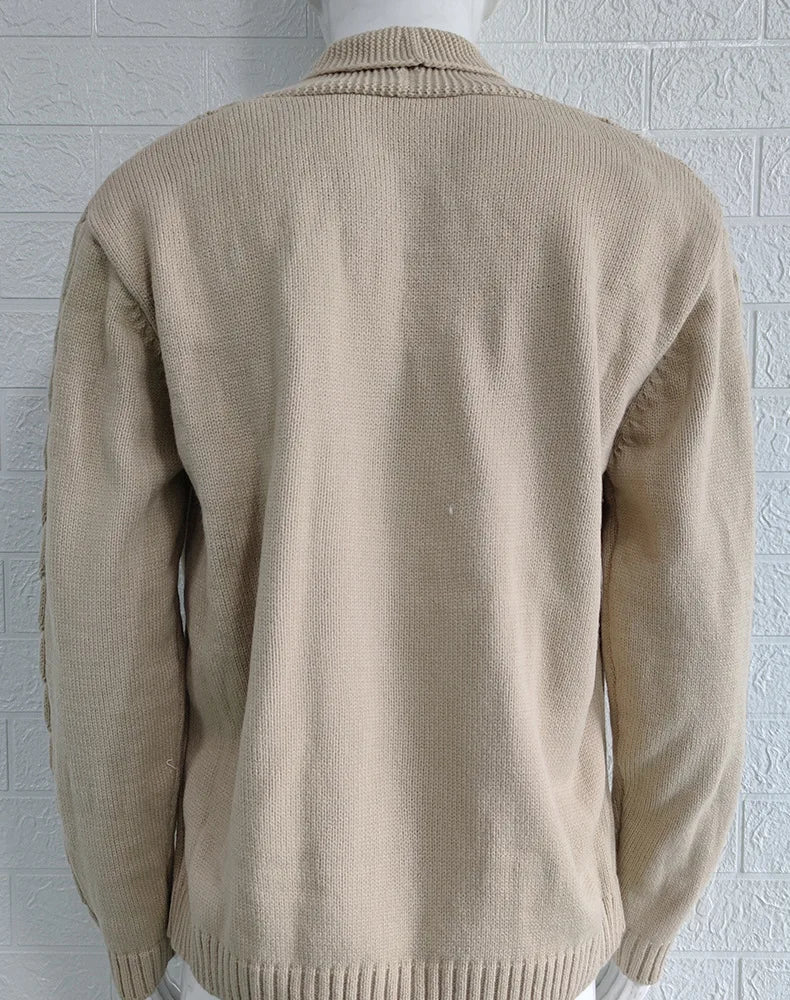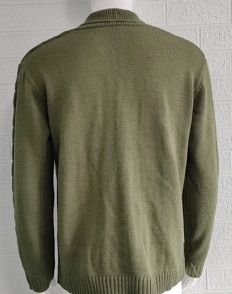 Autumn Winter Men's Warm Knitted Sweater Solid Single-breasted Twisted Texture Cardigan Lapel Slim Buttoned Thick Sweater Male