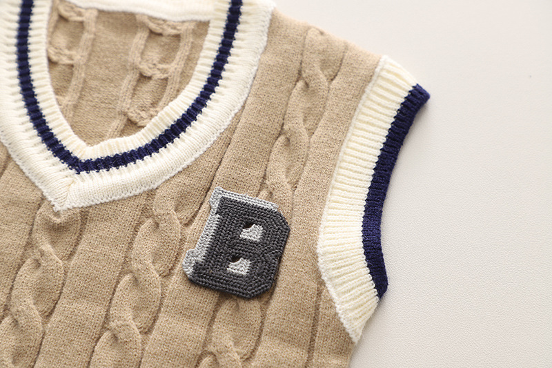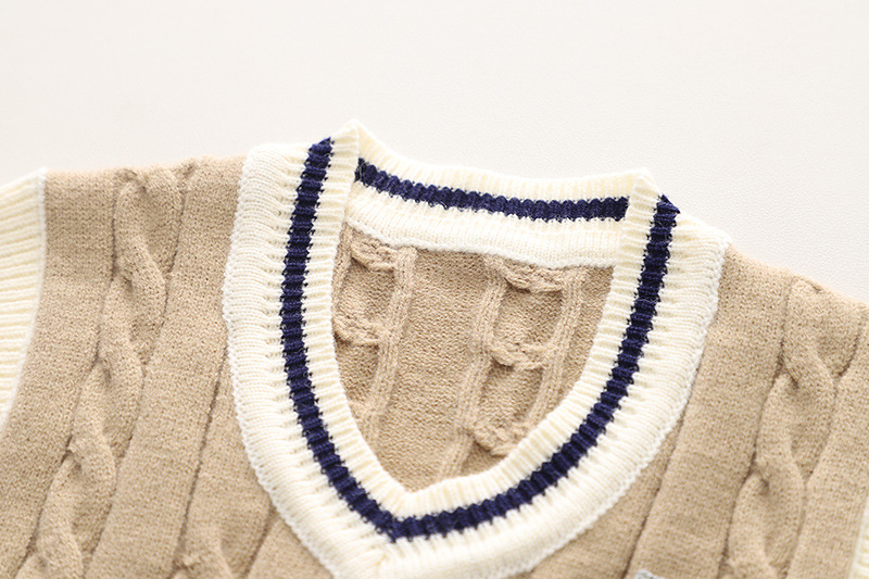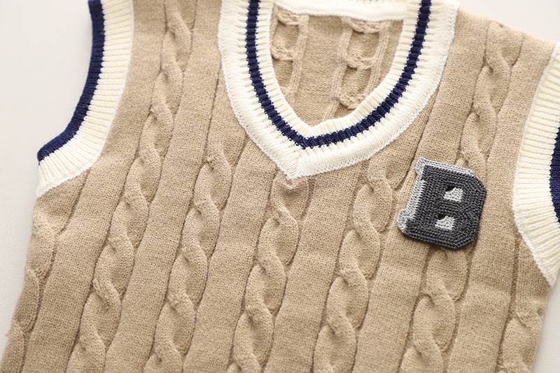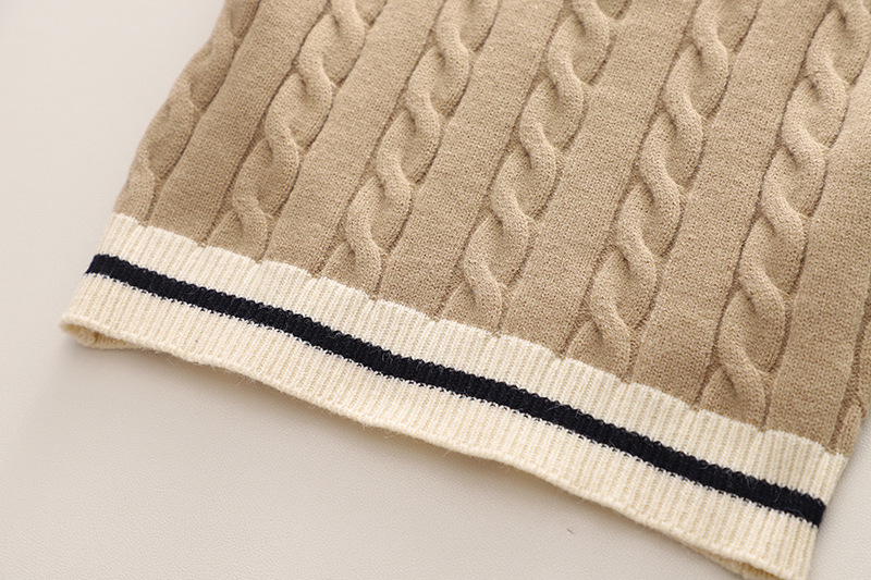 Color: 8223 tie B- shaped sweater three-piece beige vest, 8223 tie B- shaped sweater three-piece khaki vest