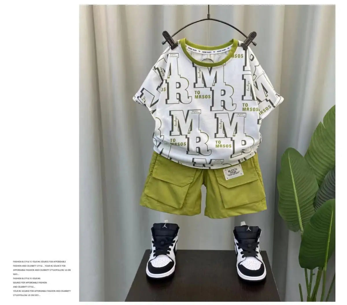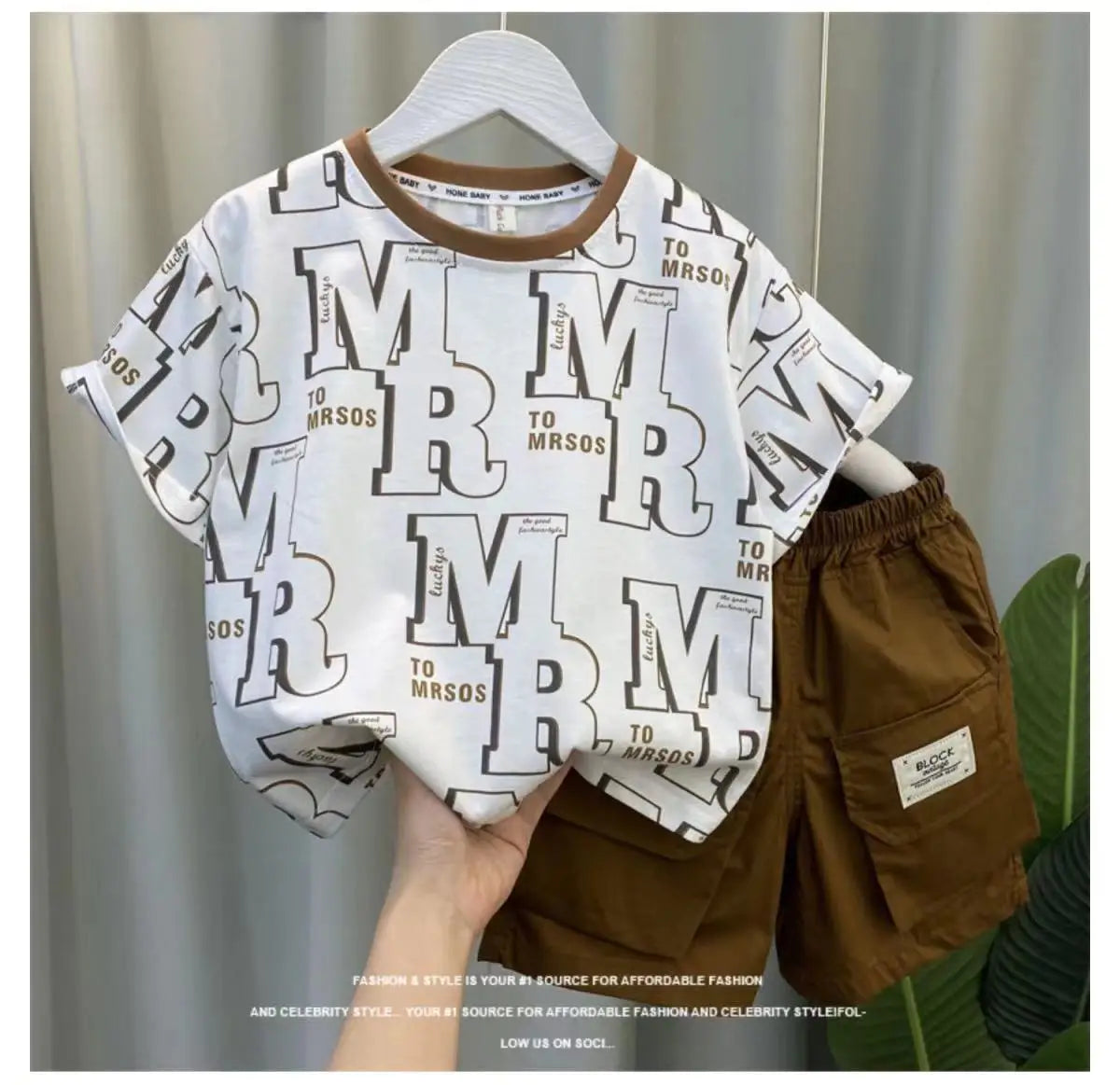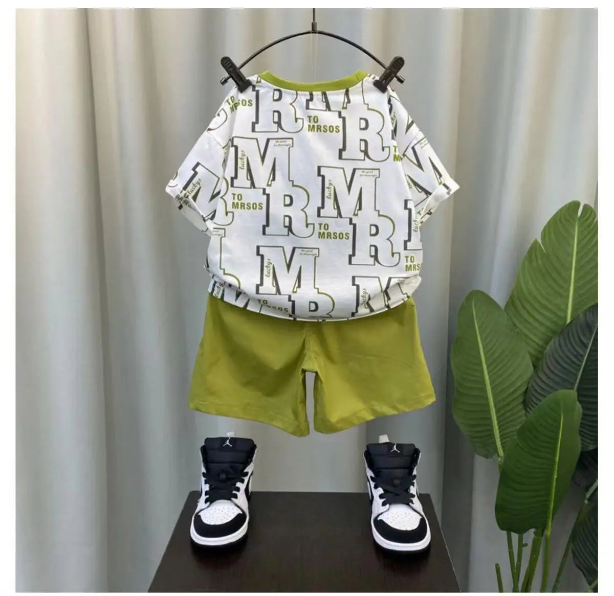 Boys Summer Short Sleeve Set 2024 New Fashionable Baby Clothes Boys Handsome Clothes Children's Letter Two Piece Set