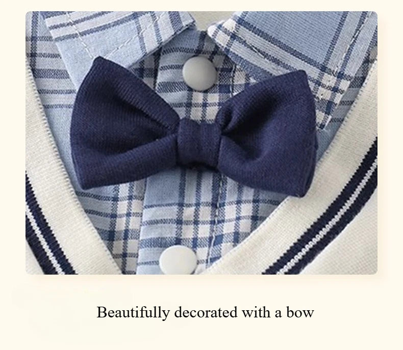 Boys Summer Short-sleeved Jumpsuit Clothes Baby Fake Two-piece College Style Onesie Babe Cute Dog Label Romper Fashion Outwear