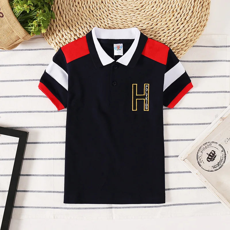 Boys Summer T-Shirt Short Sleeve Kids Polo Shirts for Boys Children Patchwork Tees Baby Tops girls Clothes for 3-7year Shirt Top