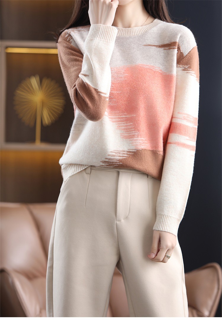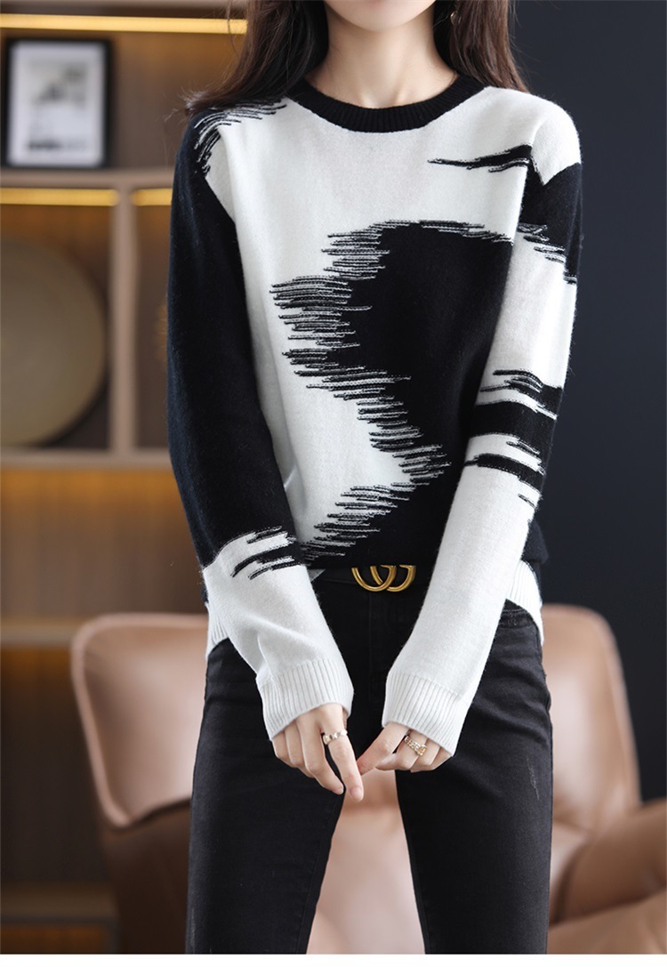 Fashion Round Neck Contrast Color Sweater Women's Autumn And Winter New Casual Loose