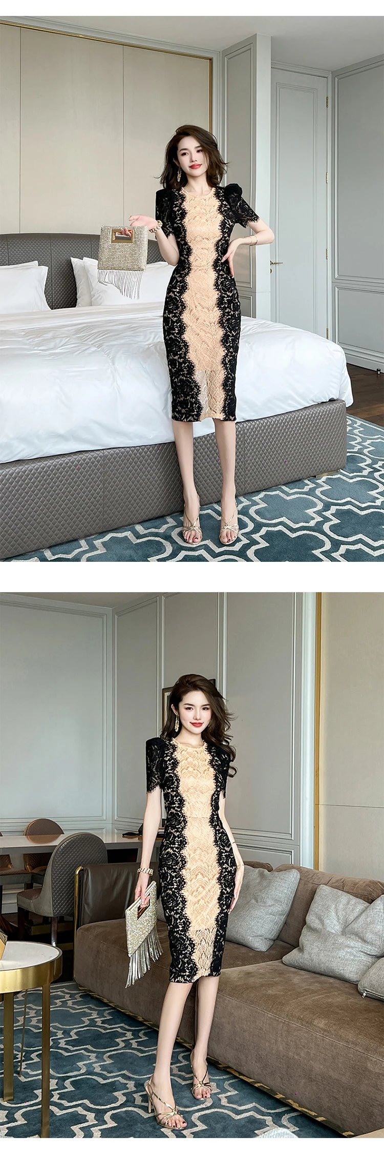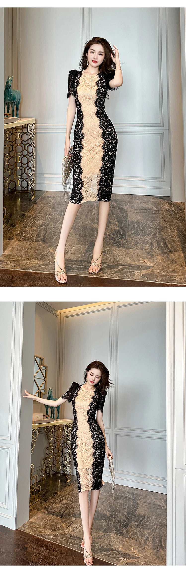 Fashion Summer Elegant Evening Dress For Women Lace Chic Short Sleeve Slim Midi Party Gown Mujer Stretchy Vestido Street Clothes