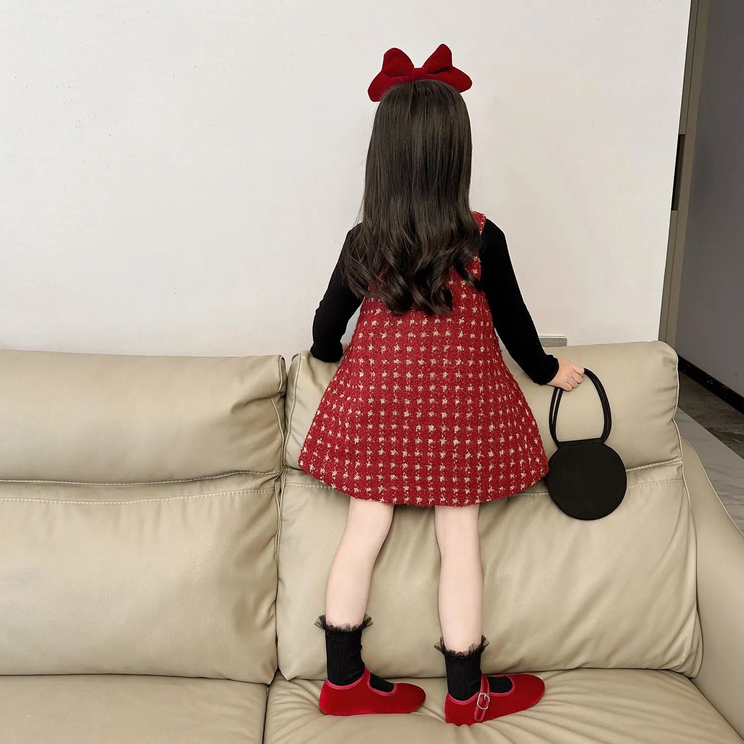 Girls Red Padded Vest Dress 2025 Winter Girls Christmas Princess New Year Dress Kids Princess Dress for Girls