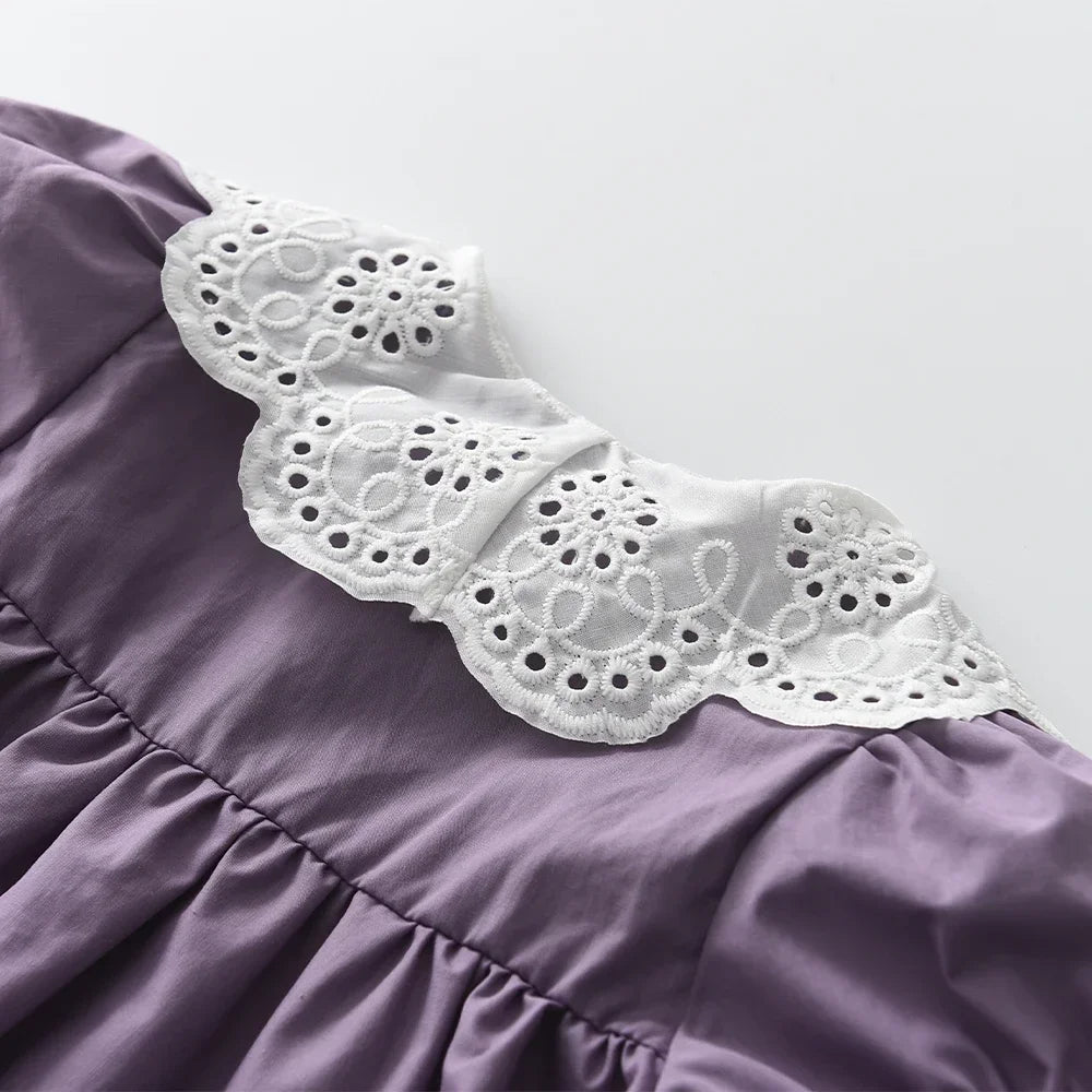 Girls Summer Dress Lace Collar Puff Sleeved Elegant Baby Kids Princess Birthday Dresses Children Clothes Vestidos 3-7 Years Old