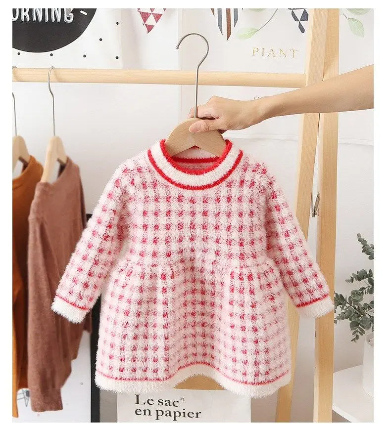 Girls Winter Imitation Mink Fleece Sweater Princess Dress Baby Knit Sweater Baby Winter Foreign Style Hedging Dress