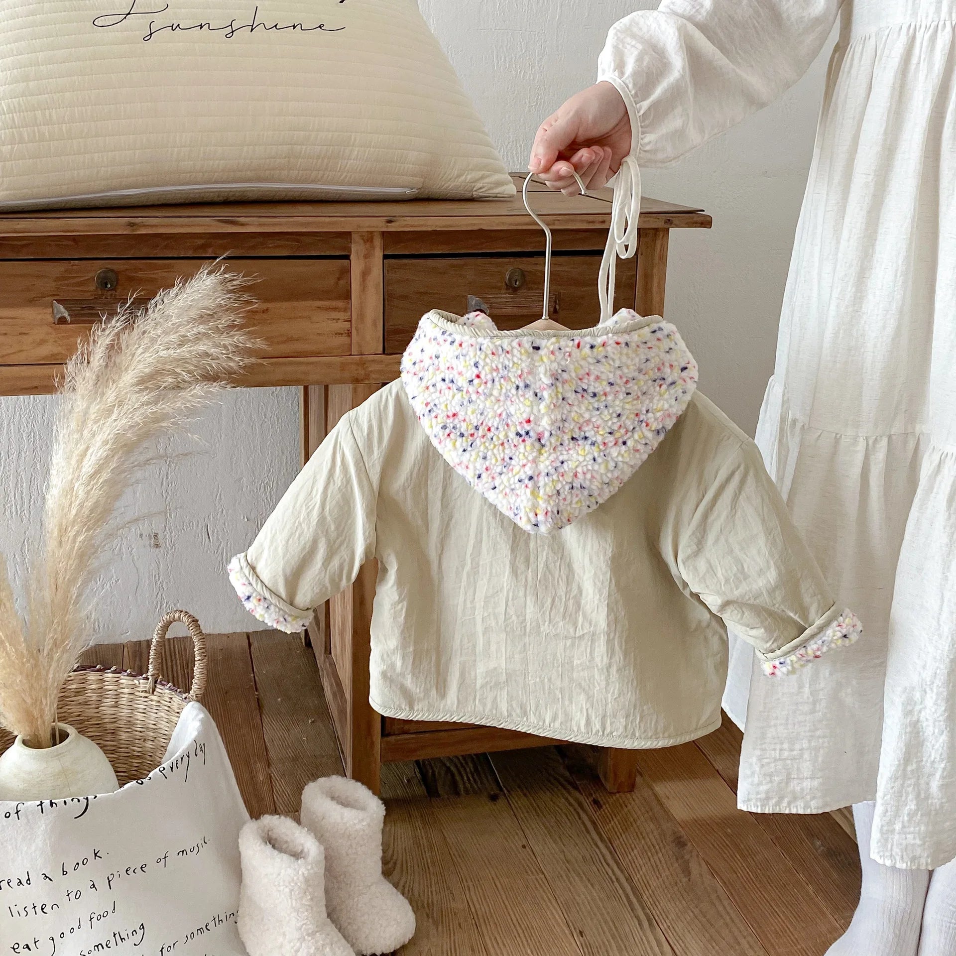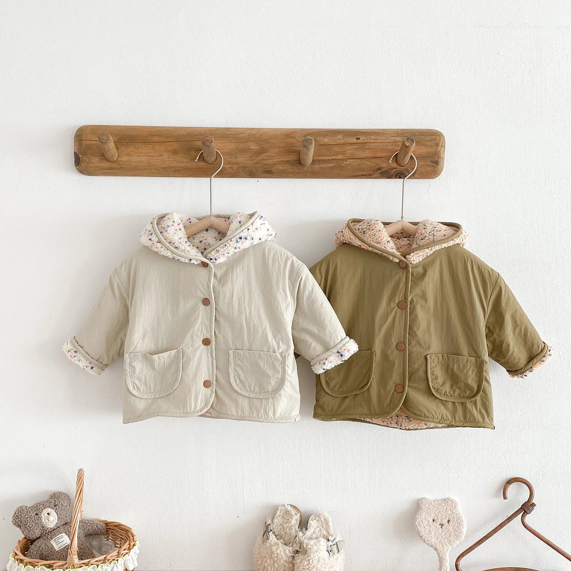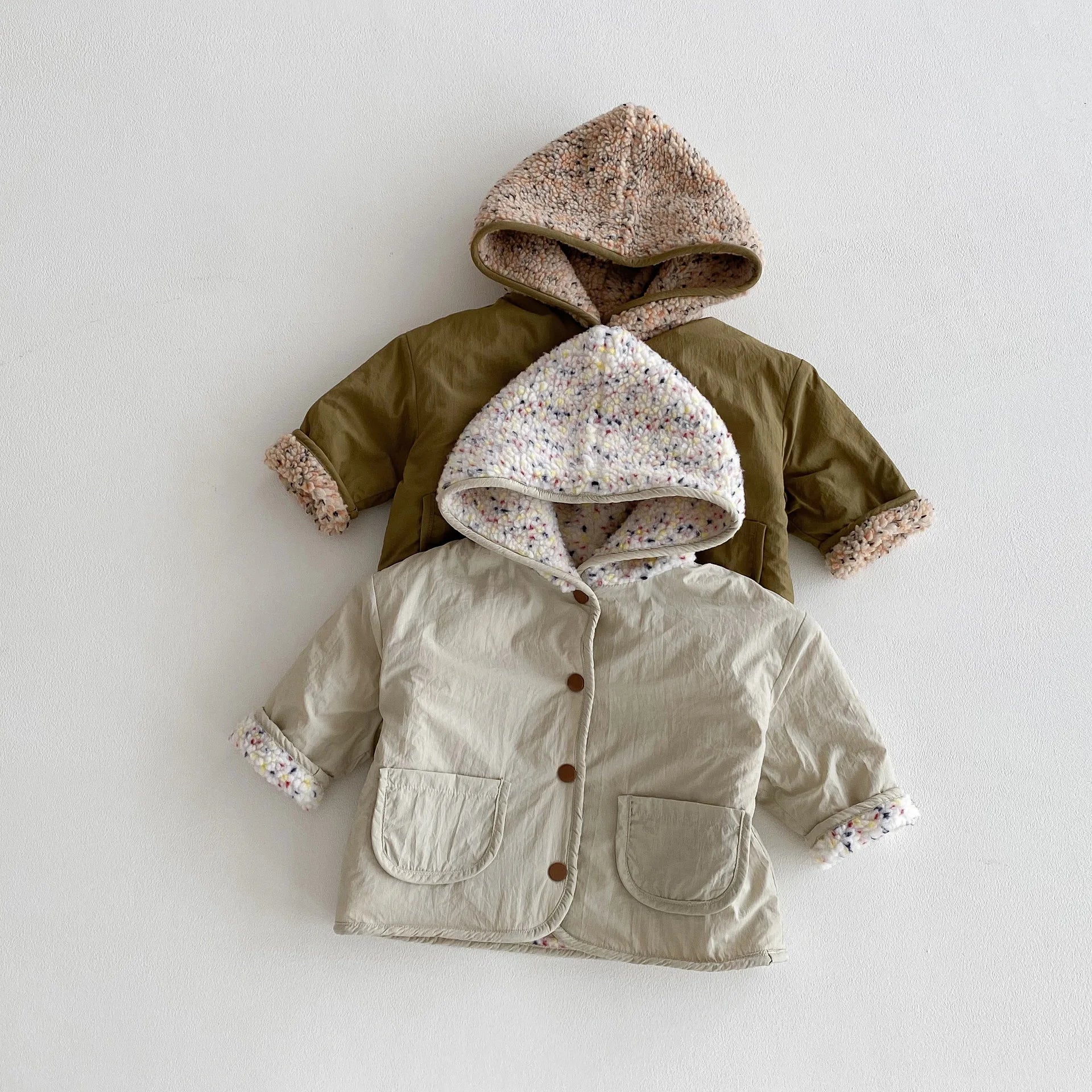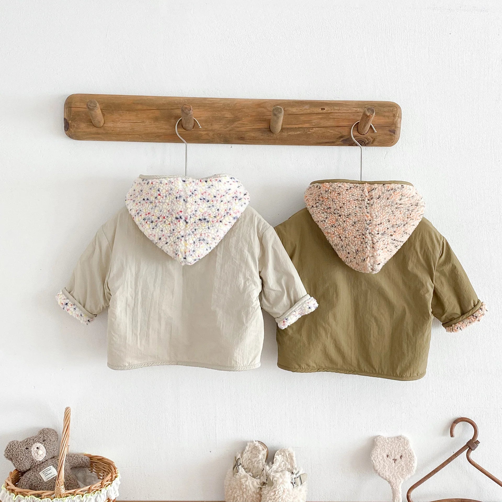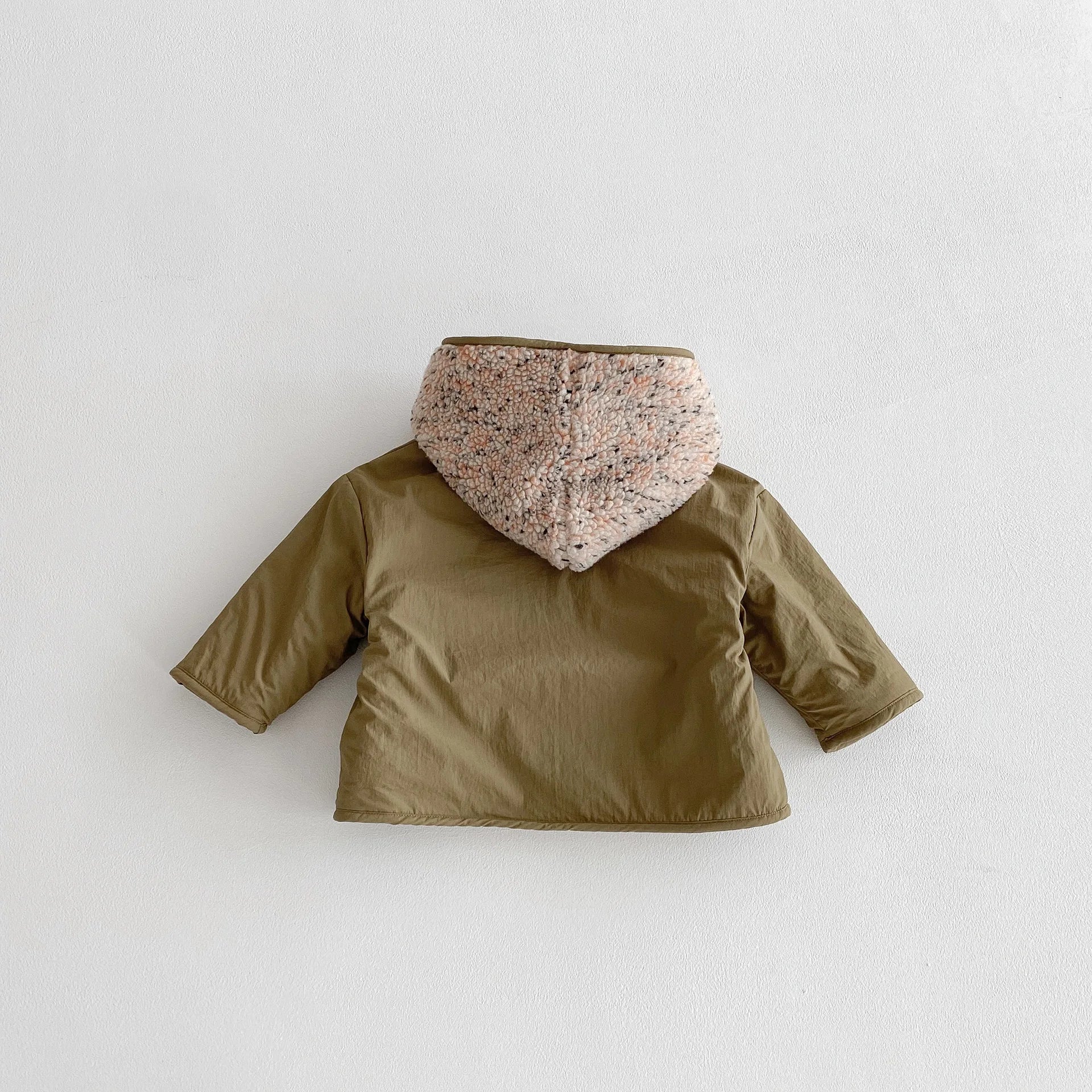 Kids Winter Jacket for Boy 1-6Y Girls Children's Coats Reversible Hooded Jacket Thickened Fleece Lined 2 Way Wear Warm Outerwear