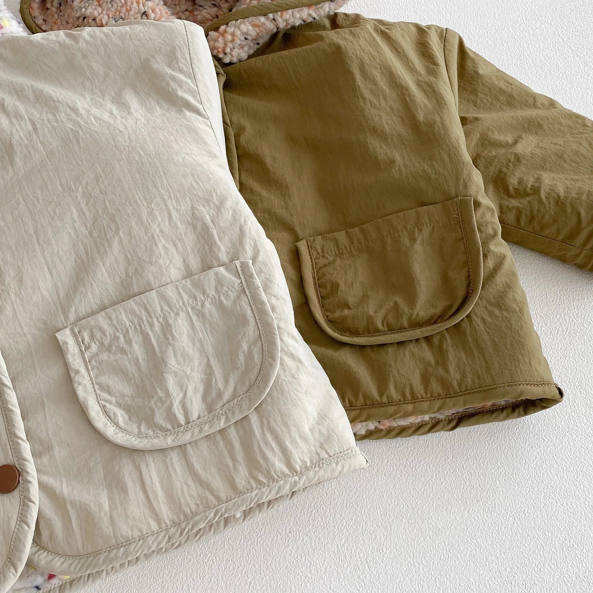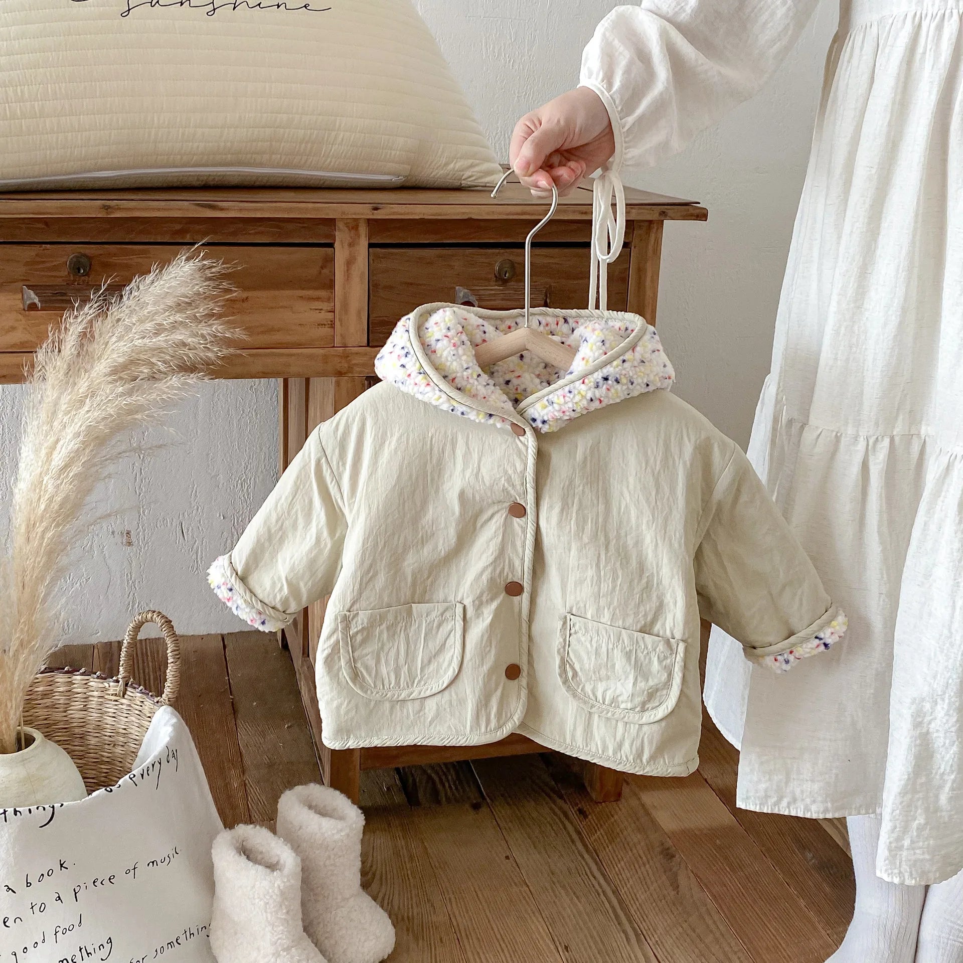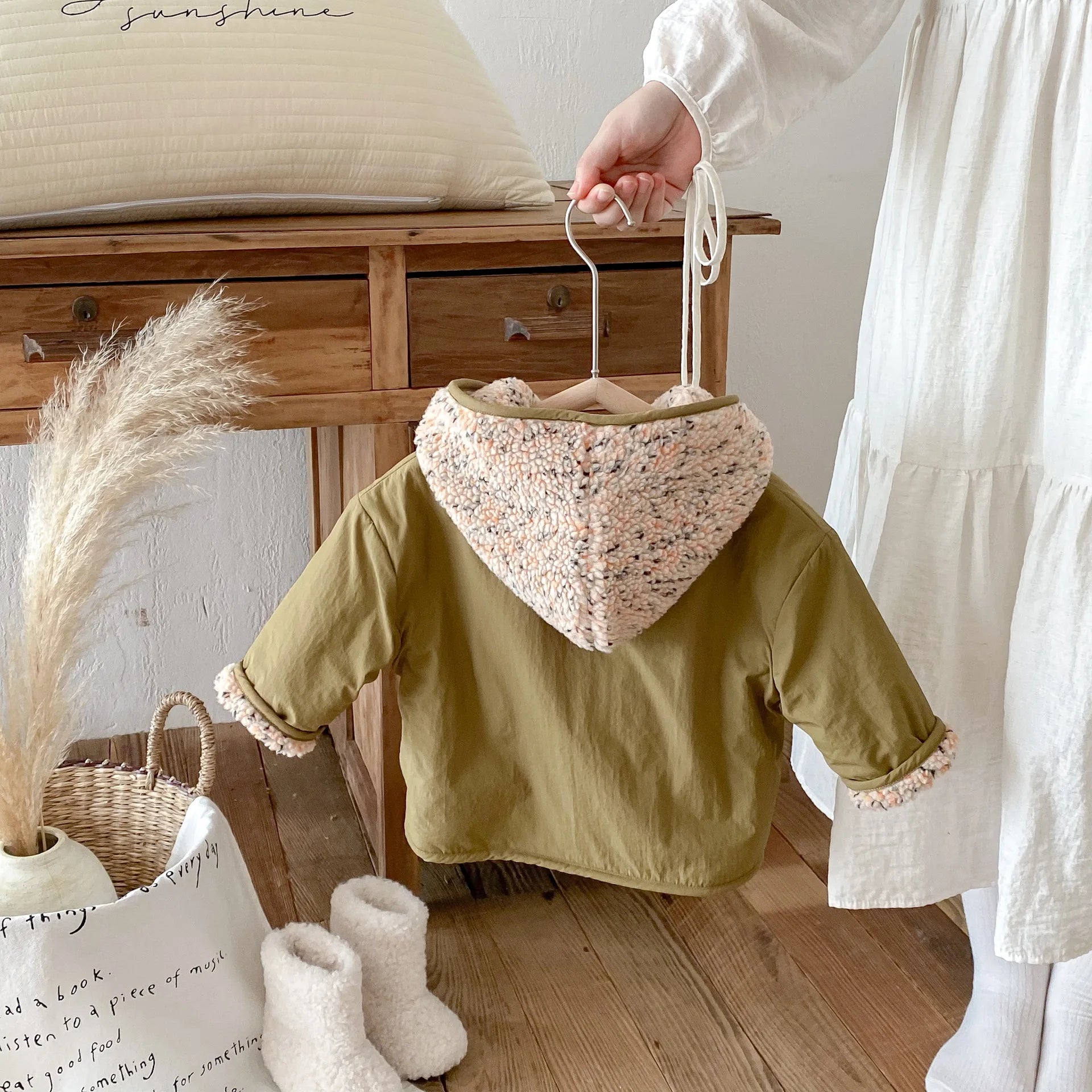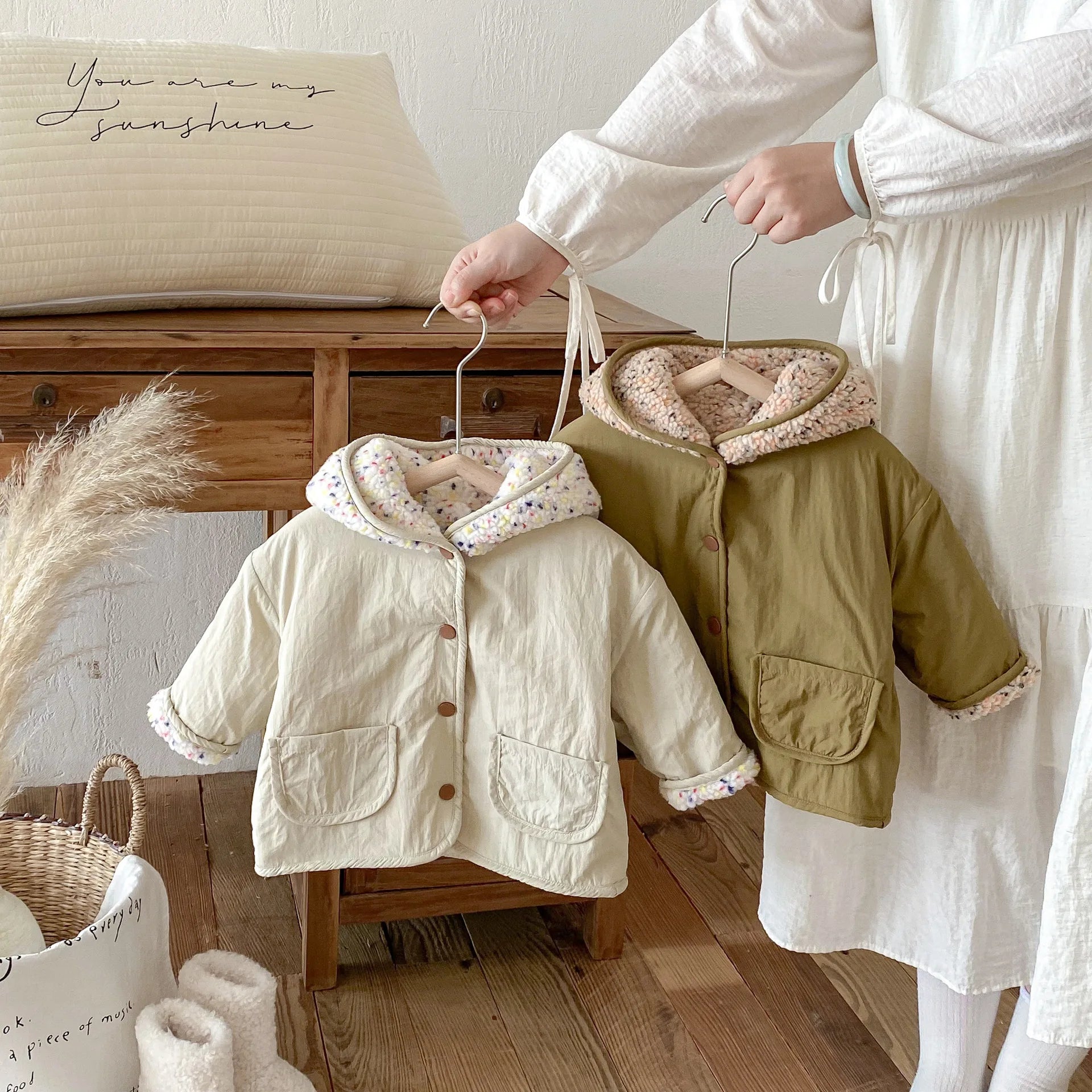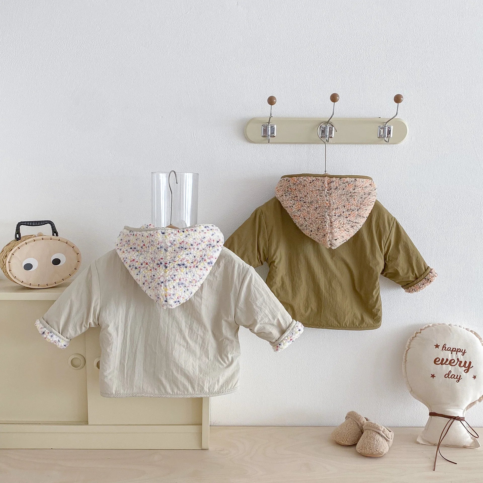 Kids Winter Jacket for Boy 1-6Y Girls Children's Coats Reversible Hooded Jacket Thickened Fleece Lined 2 Way Wear Warm Outerwear