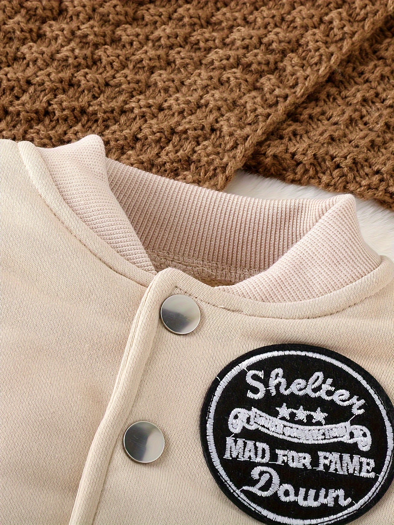 Long Sleeve Boys' Winter Two-Piece Set, Cotton And Polyester Blend Knit Sweater And Pants, Casual Outfit With Alphabet Pattern, Machine Washable, Outdoor Cloth