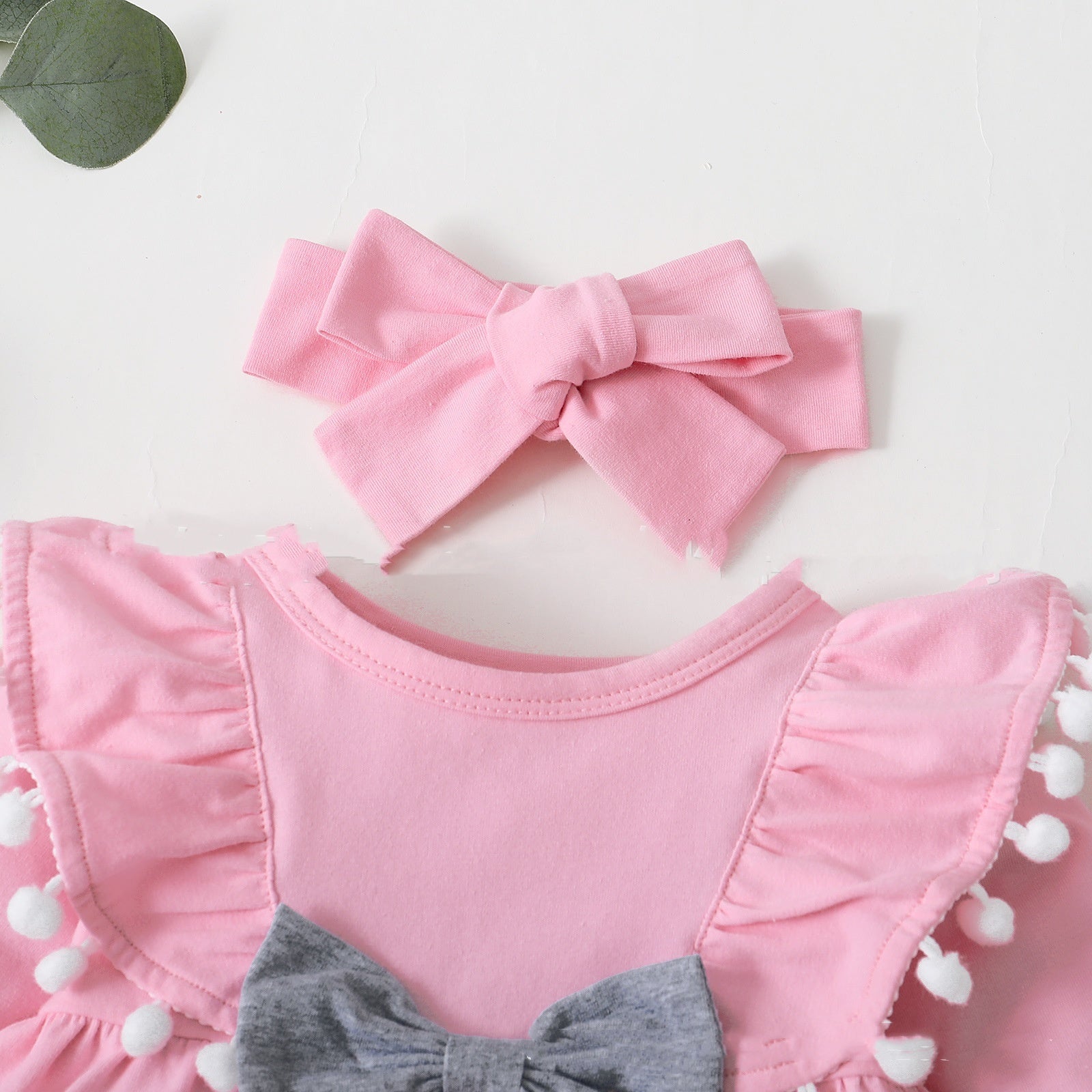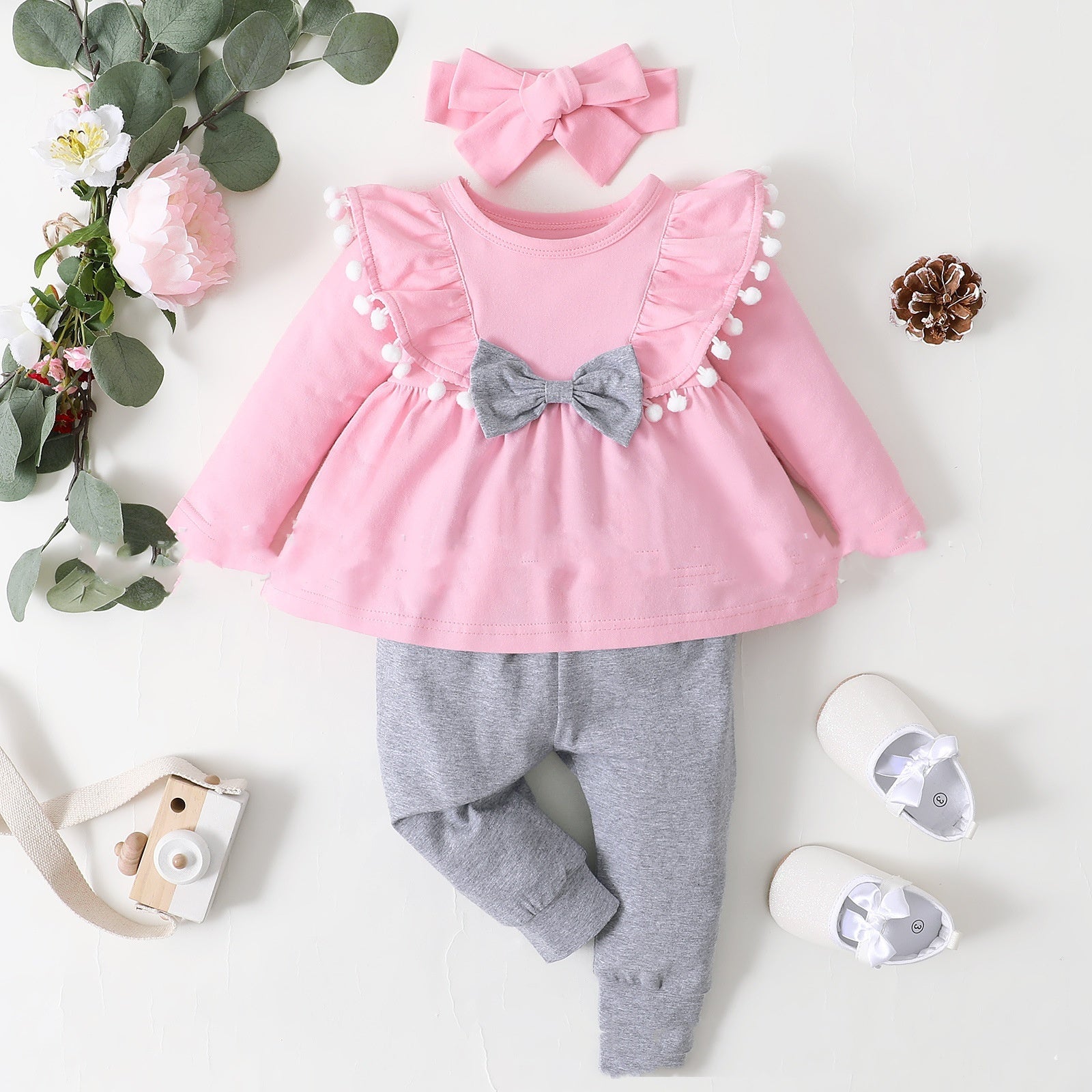 Long Sleeved Ball Fly Edge And Gray Leggings Set