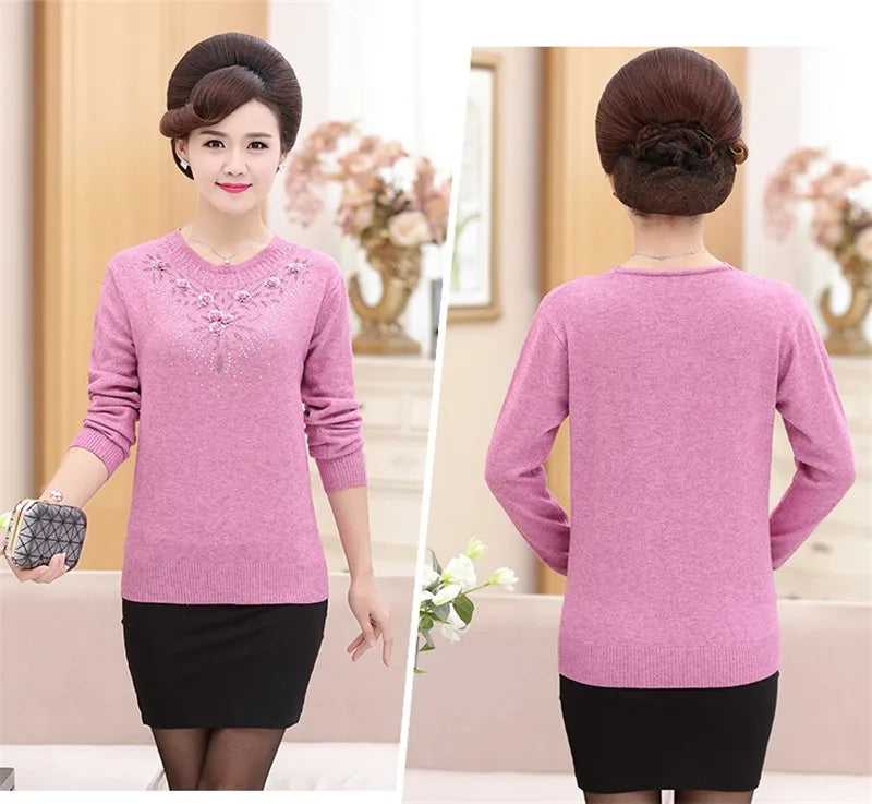 Middle-aged Women's Winter Sweaters And Pullovers Warm Bottoming O-neck Wool Sweater Mother Dress Tops Jumper Feminina W105