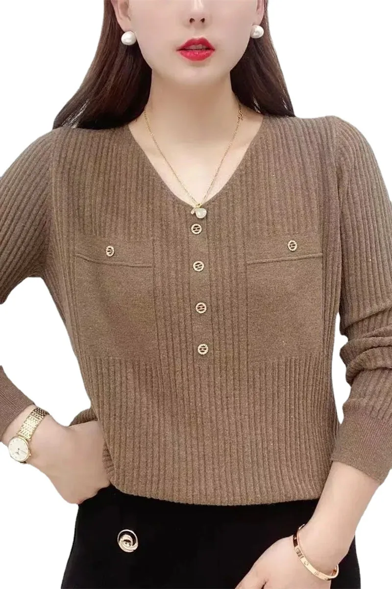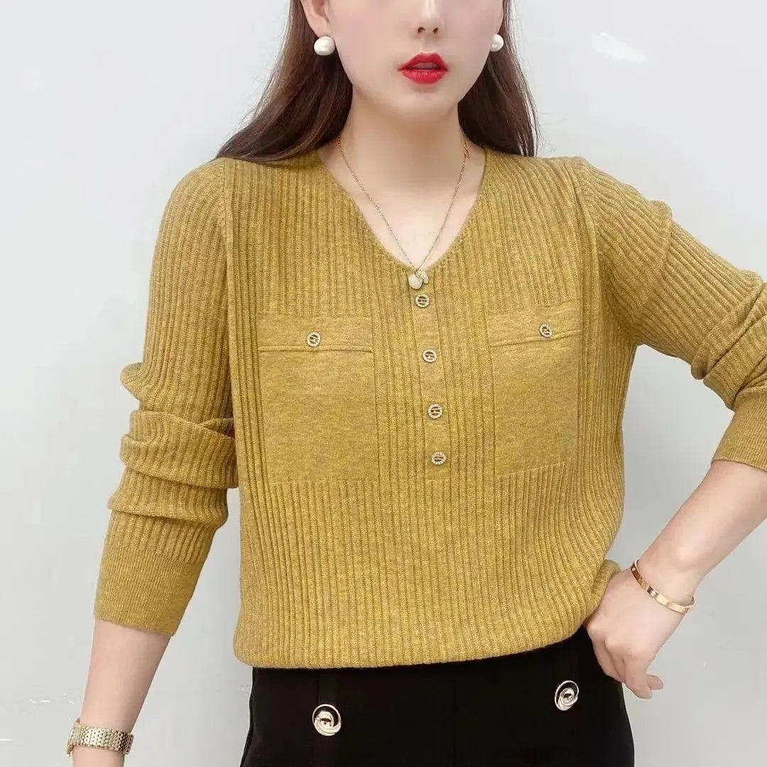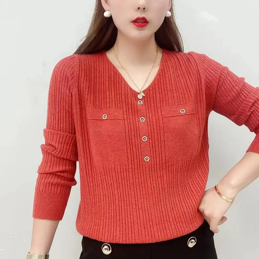 New Long Sleeve Knit V-Neck Pullover Loose Thin Sweater Underlay Autumn Sweater Top