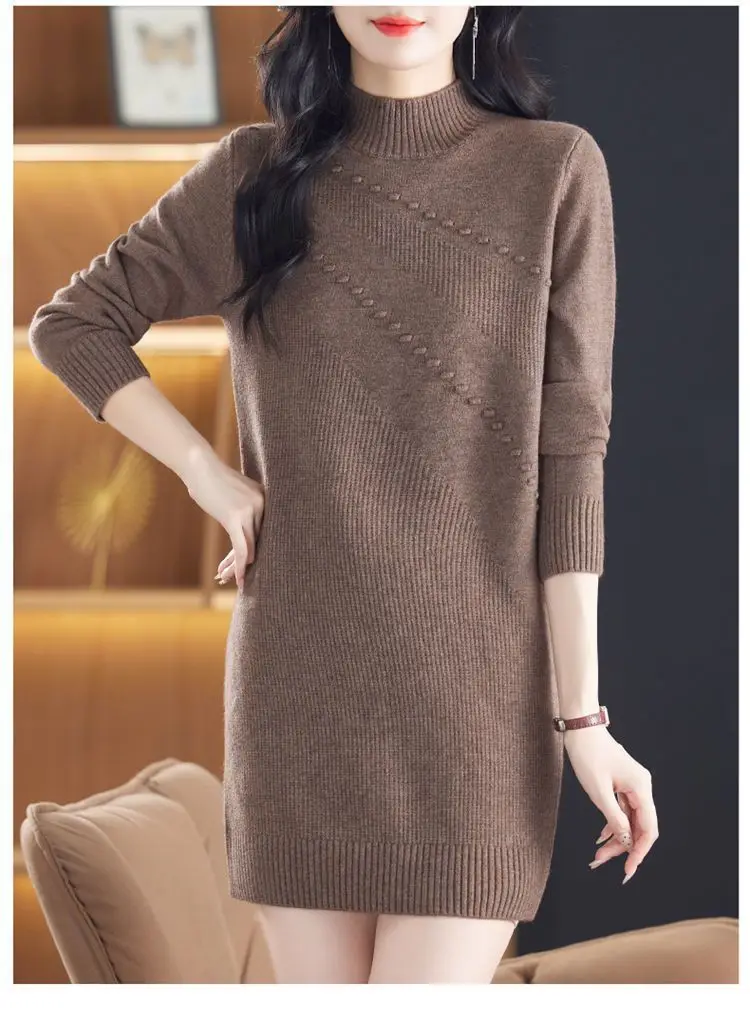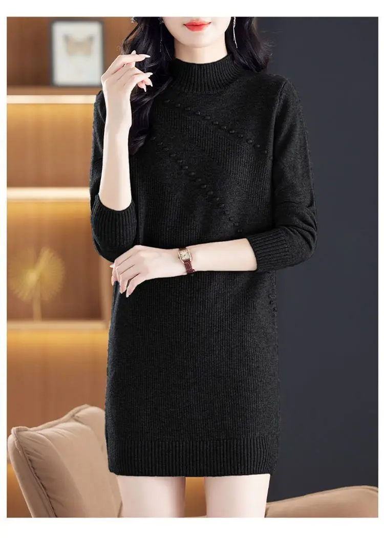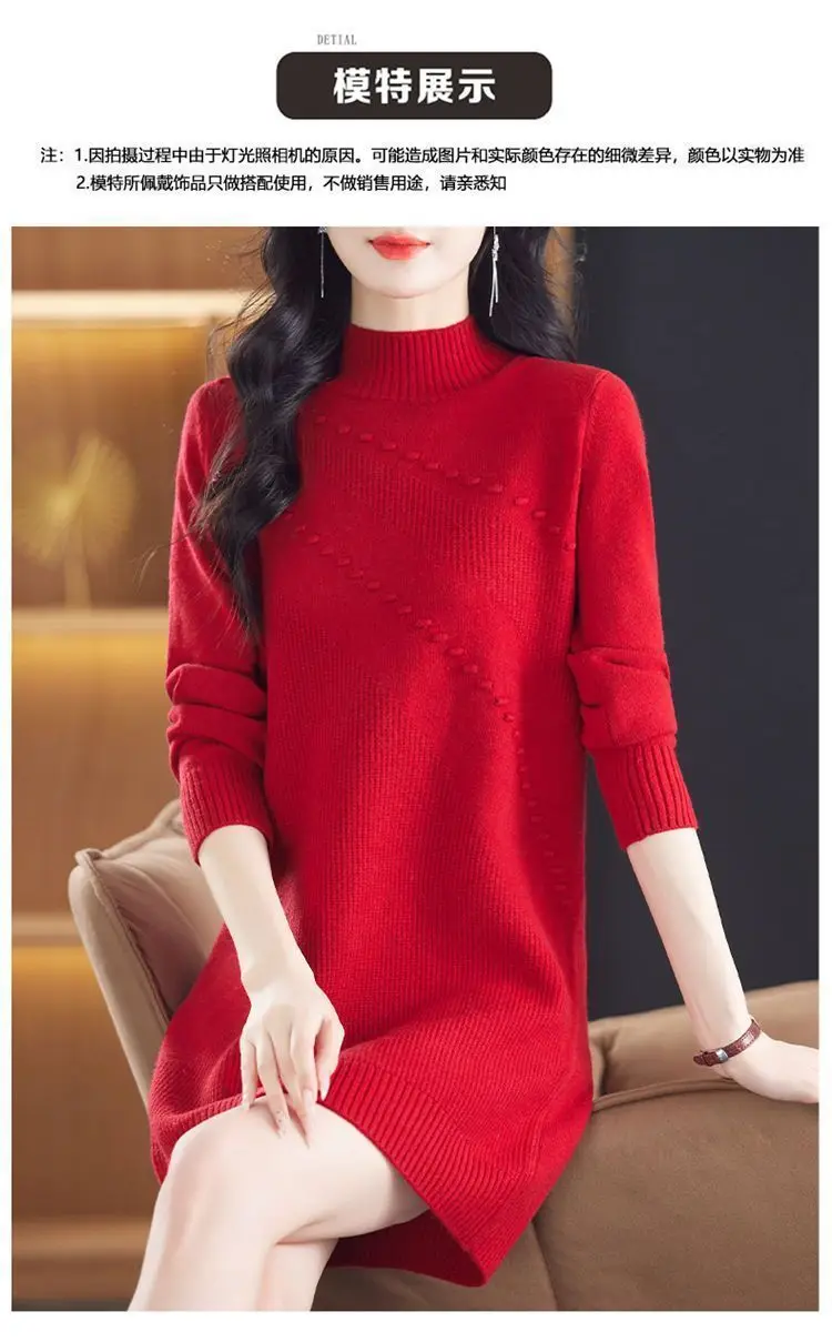 New Vintage Autumn Women's Clothing Half Turtleneck Warm Winter Sweater Dress Long Sleeve Pollovers Top Female Knitwear Jumper