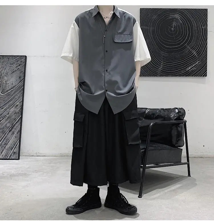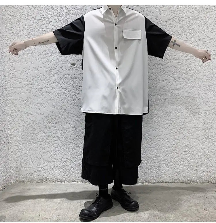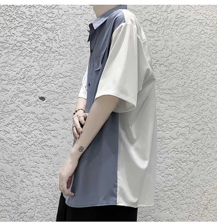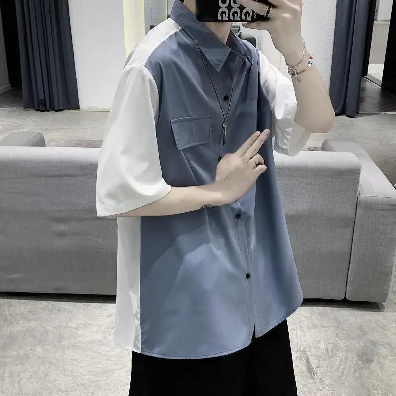 Summer Men Loose Short Sleeve Shirt Trendy High Street Stylish Top
