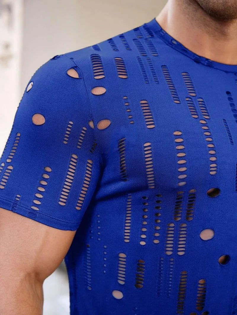 Summer Personality Fashion Breathable Men's Fitness Sportswear, Attractive Sexy Perspective Men Short-sleeved T-shirt Men Shirts