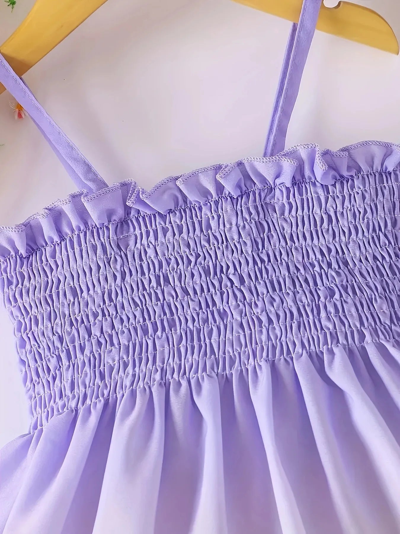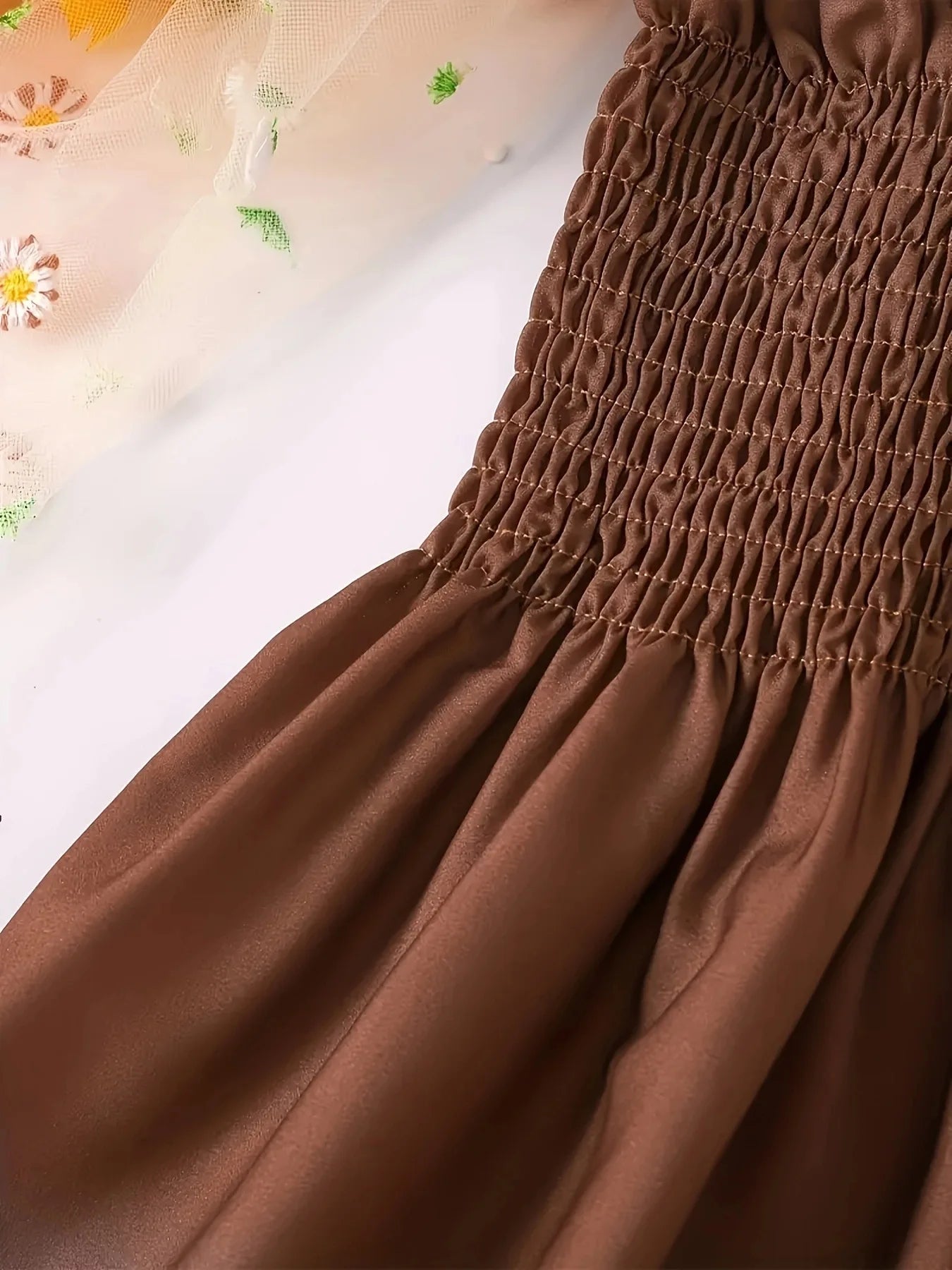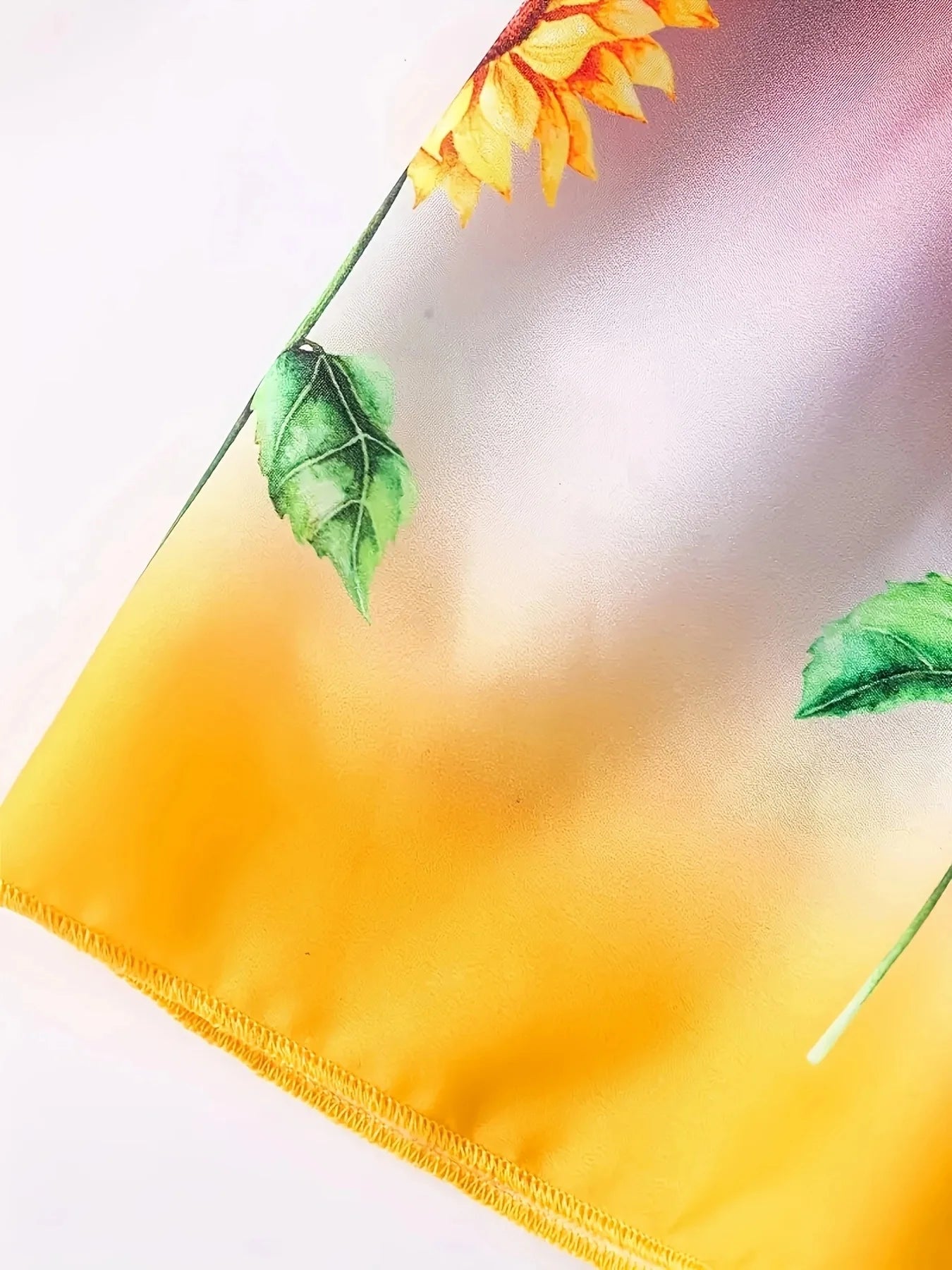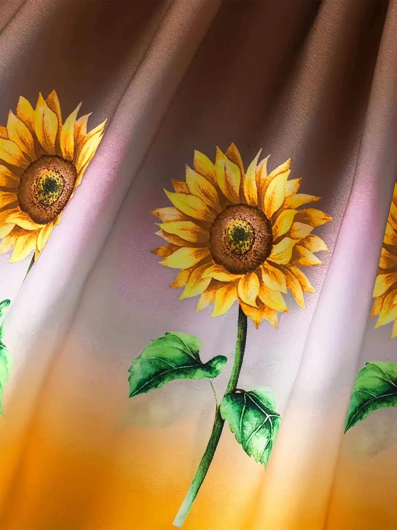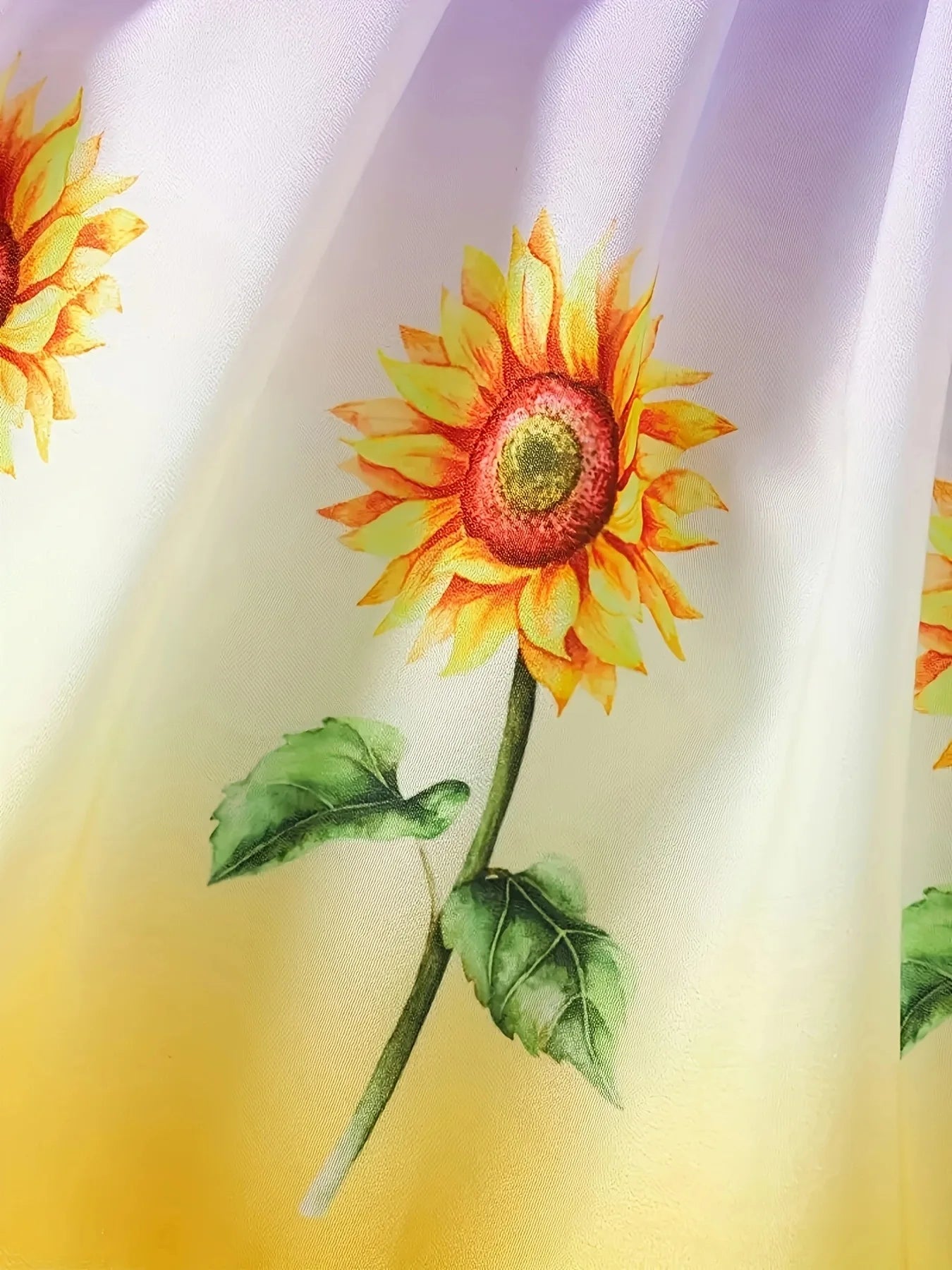 Summer style dress for girls aged 1-8, with suspender straps, pleated sunflower print, rustic style, for baby girls