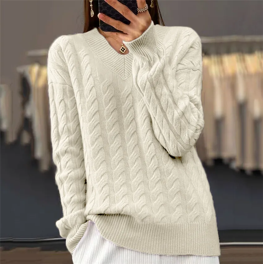 V-Neck Women's Sweater Autumn Winter New Fashion Long Sleeved Knit Pullover Warm Solid Basic Female Tops Knitwear