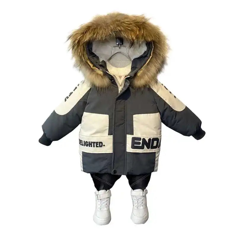 Winter Boys Coat 2023 New Baby Fur Collar Hooded Cotton Plus Velvet Thicken Warm Jacket For Children's Coat For Boys 2-8Years