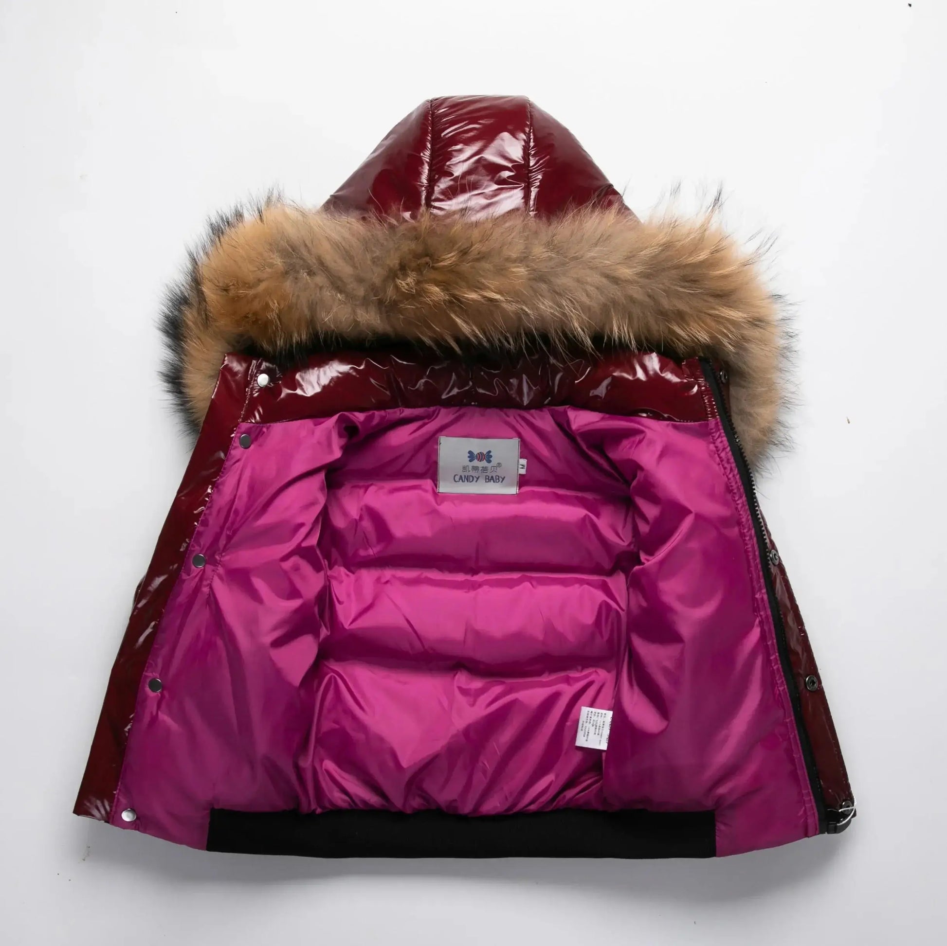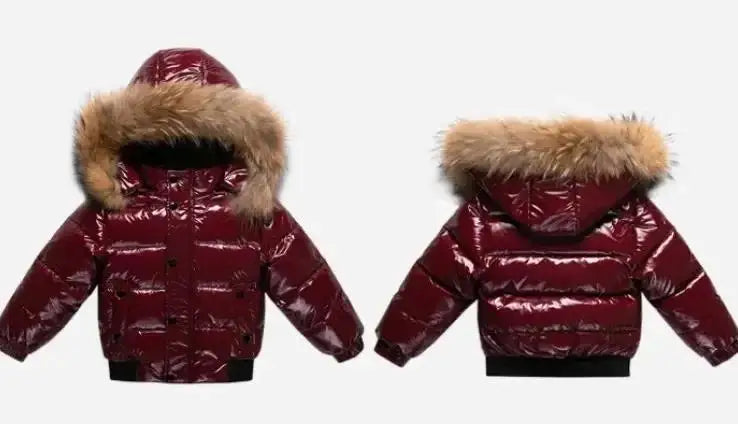 Winter Infant Boys Down Jacket Faux Fur Long Sleeve Thicken Warm Baby Boys Parkas Zipper Shinny Waterproof Toddler Boy Outerwear