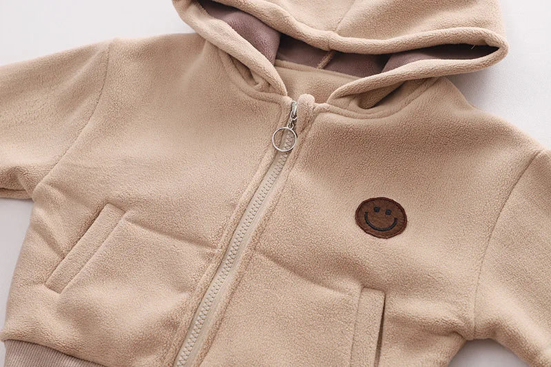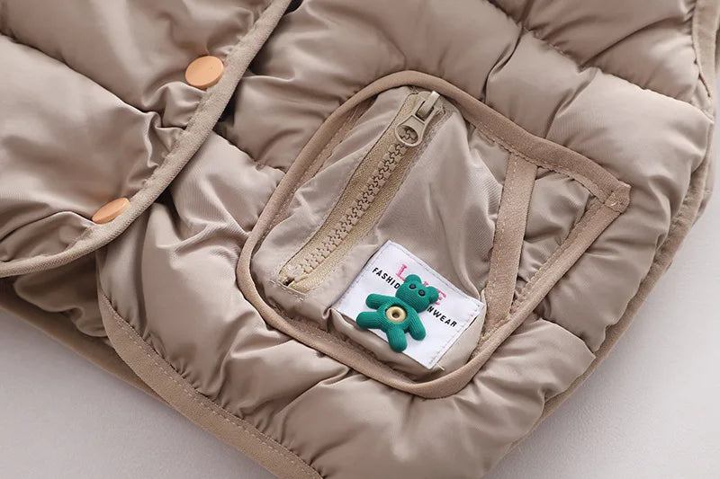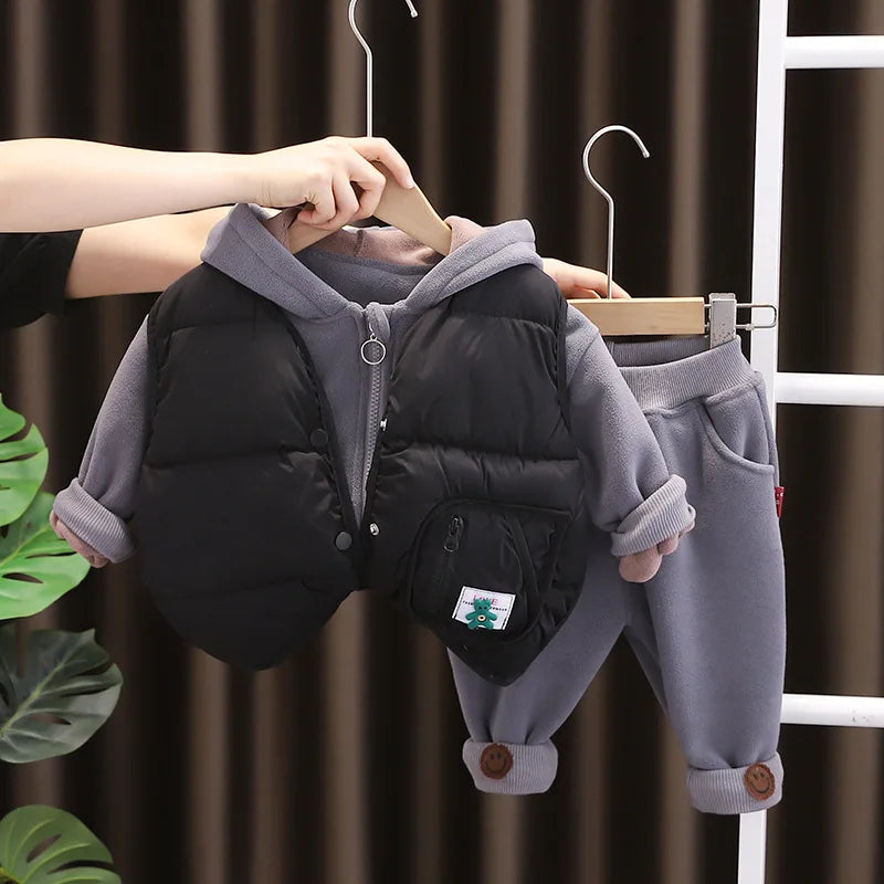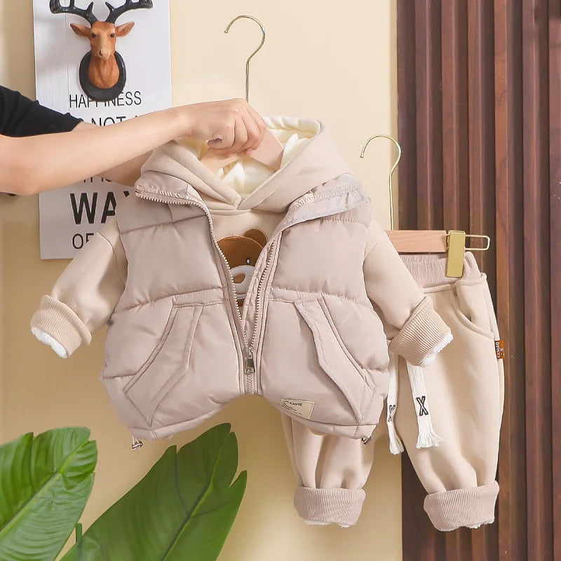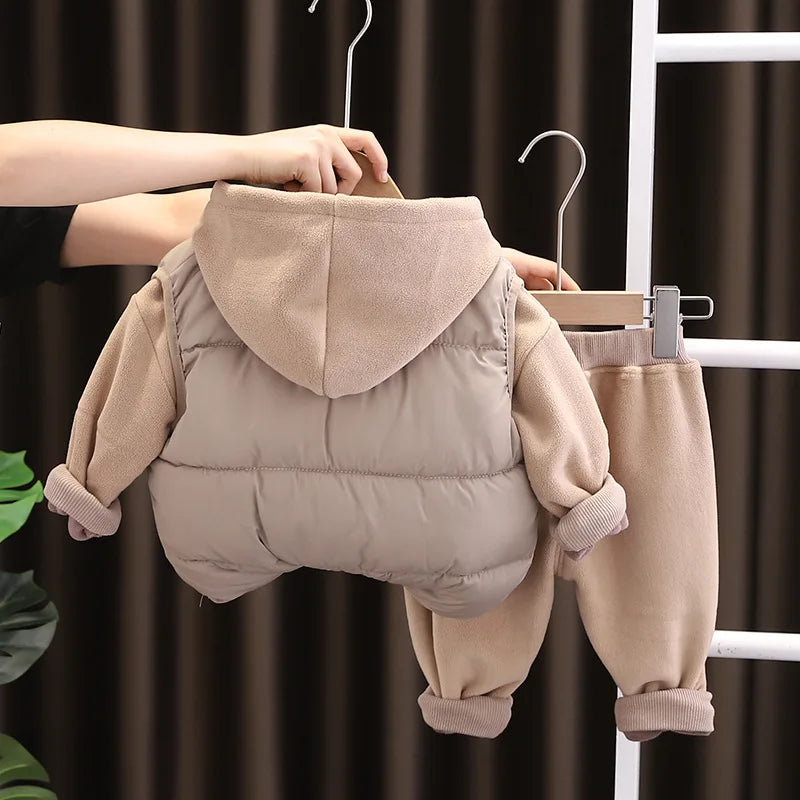 Winter New Baby Hooded Cotton Coat Long Sleeve Set for Boys and Girls' Vest with Velvet and Thickened Casual Three Piece Set