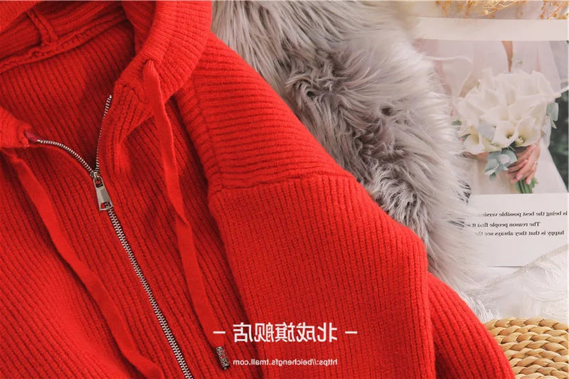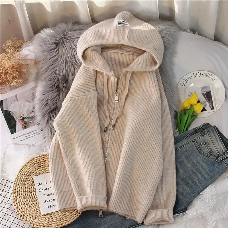Women Cardigan Sweater Coat Hooded Fashion Solid color Sweater Female zipper Knitted Spring Autumn Oversize Sweater Overcoat