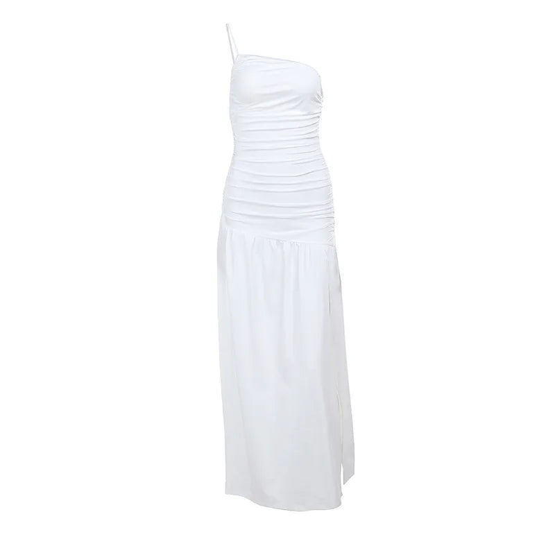 Women's Dress Summer Elegant Slim Long Dress One-Shoulder Suspender Oblique Shoulder Gathered Slit Sexy Pure Color Backless Elegant Long Dress Evening Dress Party Club
