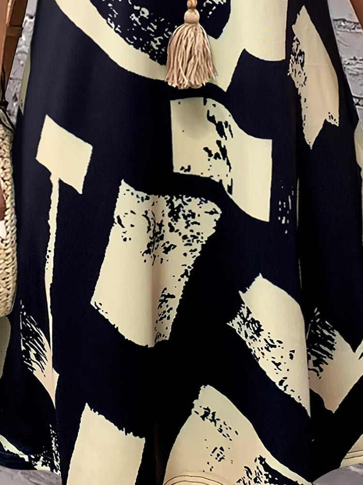 Women's Summer Abstract Print Dress, V - Neck Short Sleeve, Ideal Vacation Outfits Women, Flowy Dress Summer, Must - Have Summer