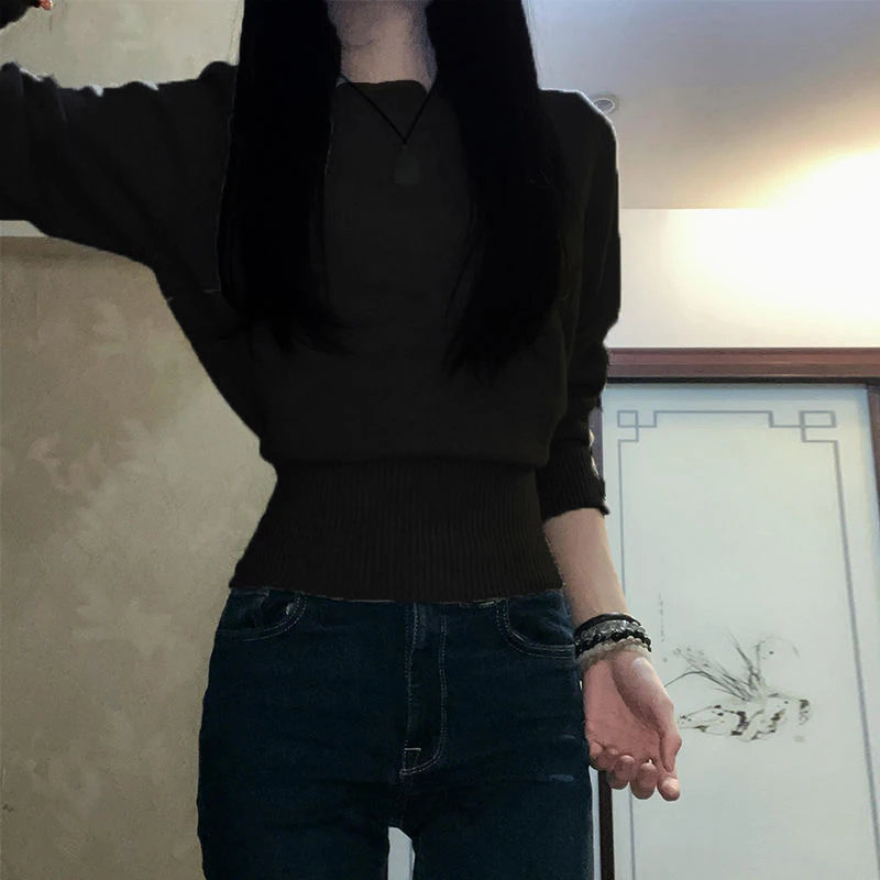 Y2K Korean autumn and winter new aesthetic fashion sweater Harajuku slim simple knit sweater high street knitted women's sweater