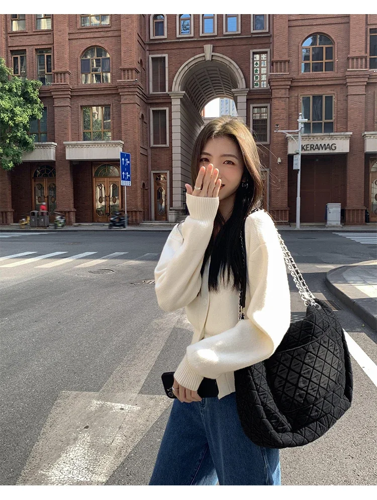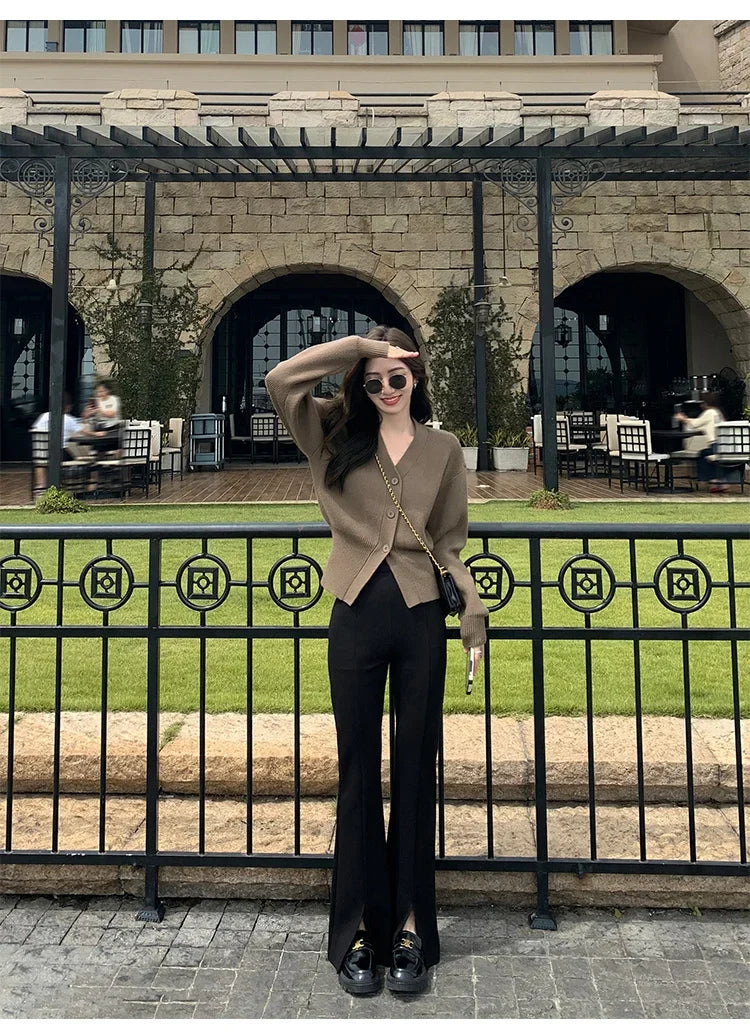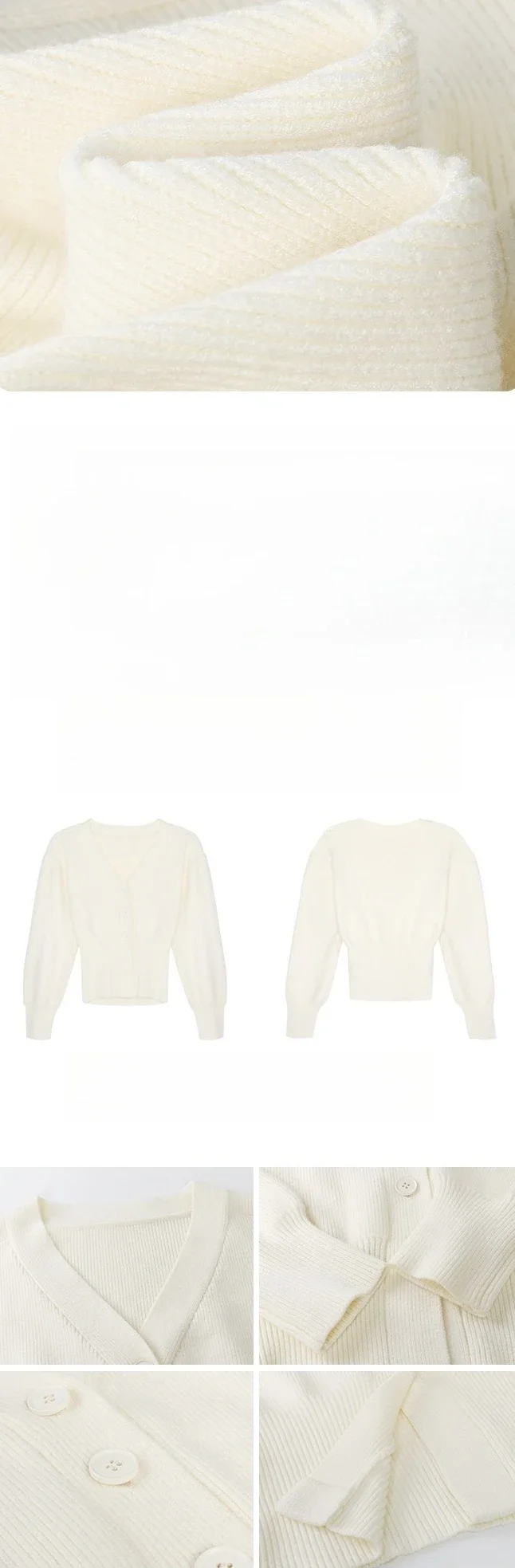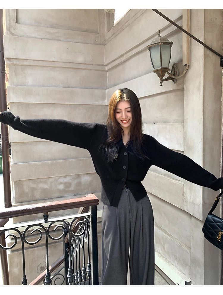 Zjaiss 2025 Autumn Winter Elegance Solid Color V-neck Sweater Knitted Casual Cardigan Unique And Niche Slim Fit Tops